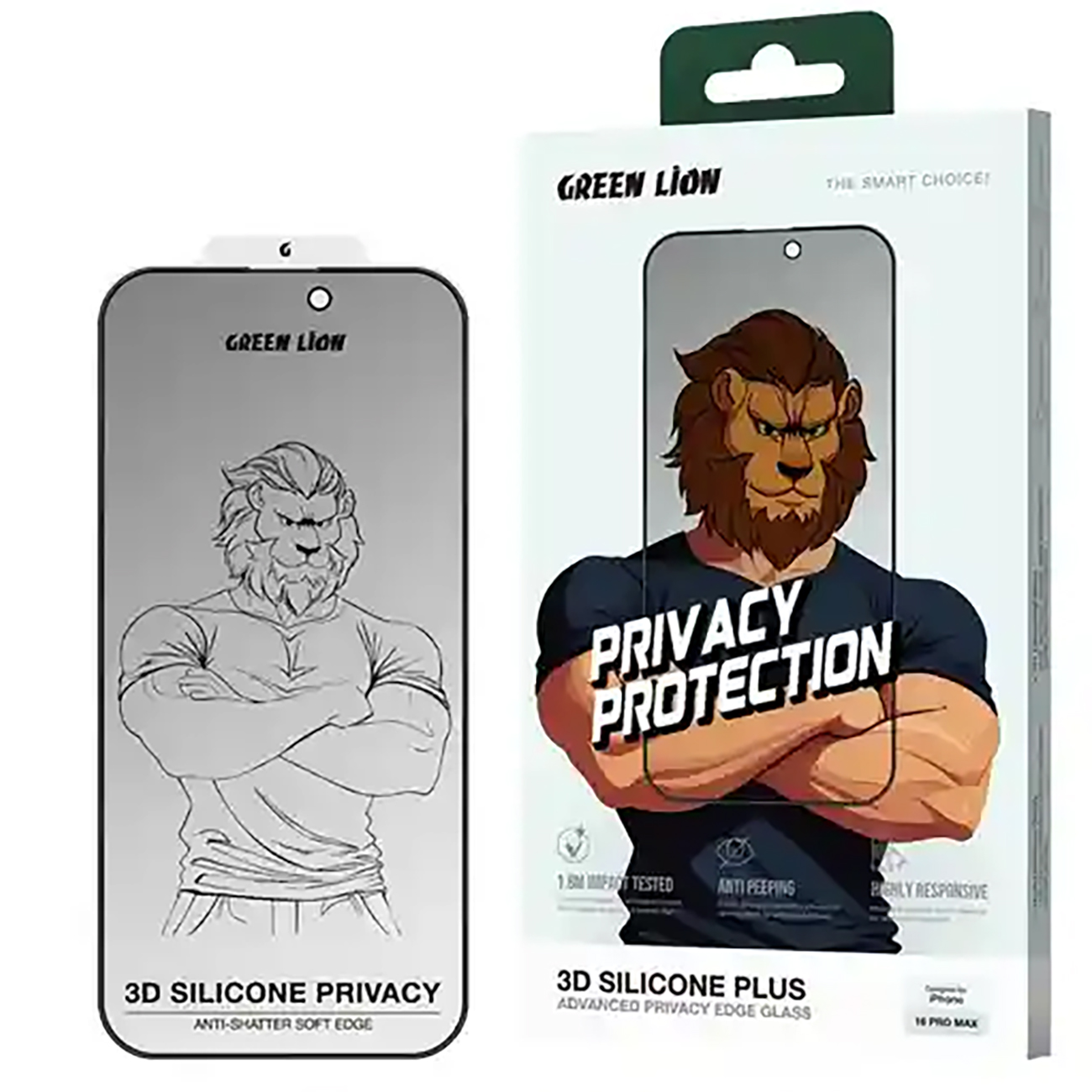 Green Lion 3D Silicone Plus Privacy iPhone 16 Pro