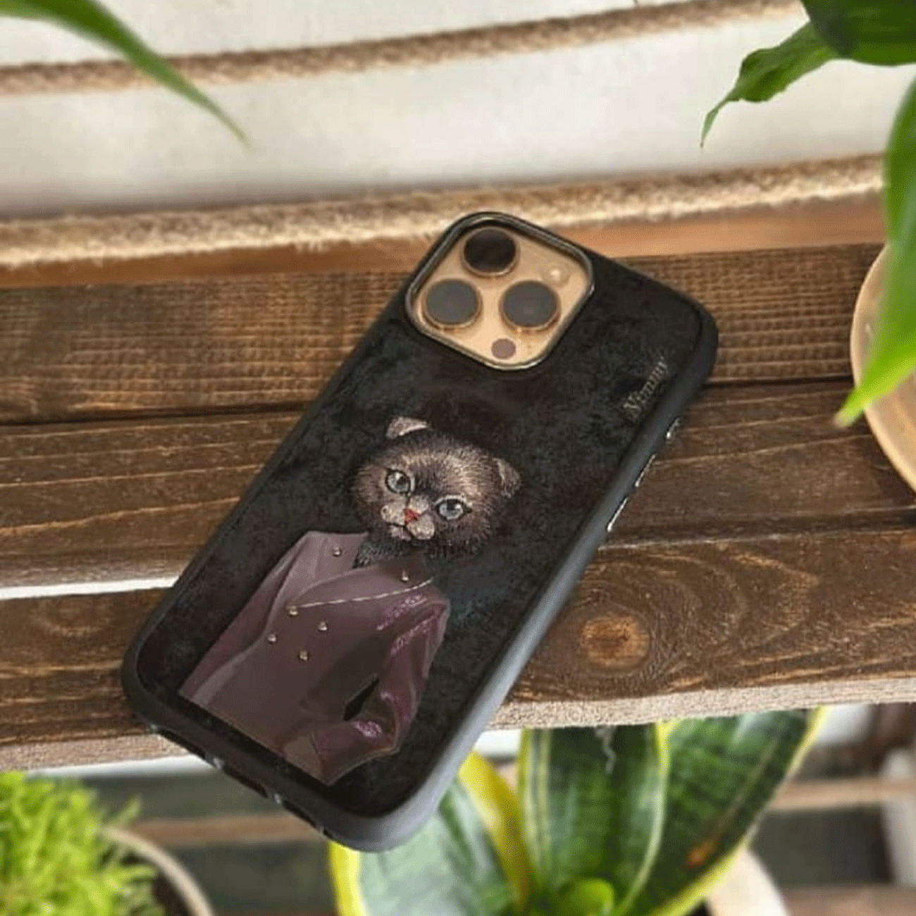 قاب محافظ گوشی آیفون 16 پرو طرح گربه با اکسسوری واقعی نیمی Fashion