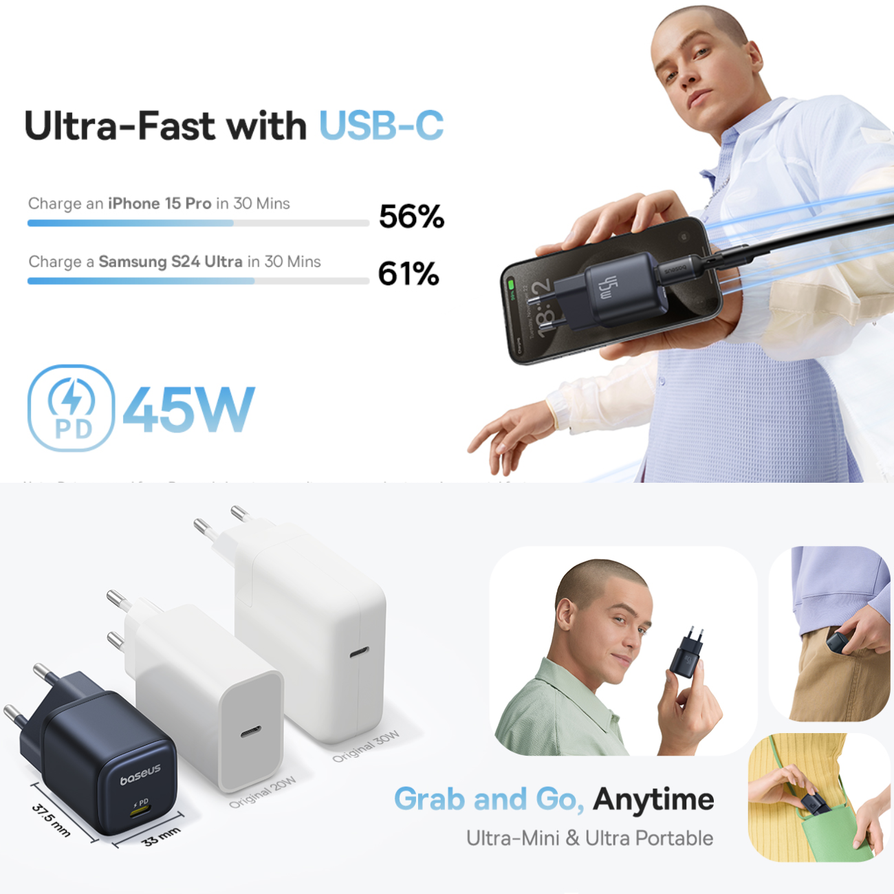 Baseus PicoGo Fast Charger 1C 45W CCGAN45CE