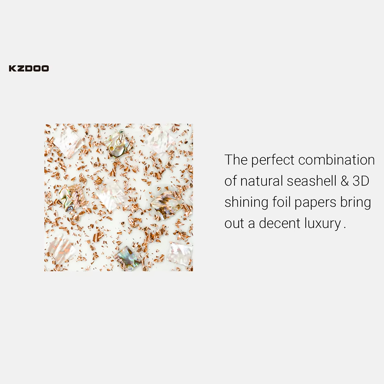 | طراحی لوکس و منحصر به فرد با | ترکیب کاغذهای فویل براق سه بعدی و صدف طبیعی |