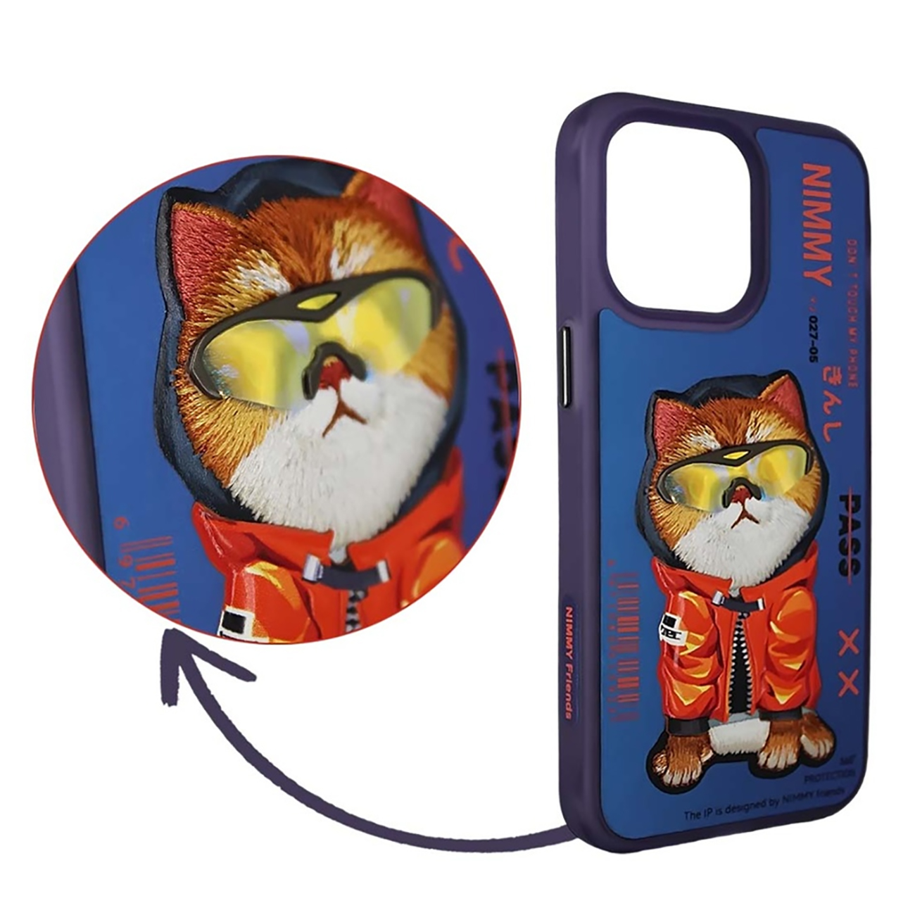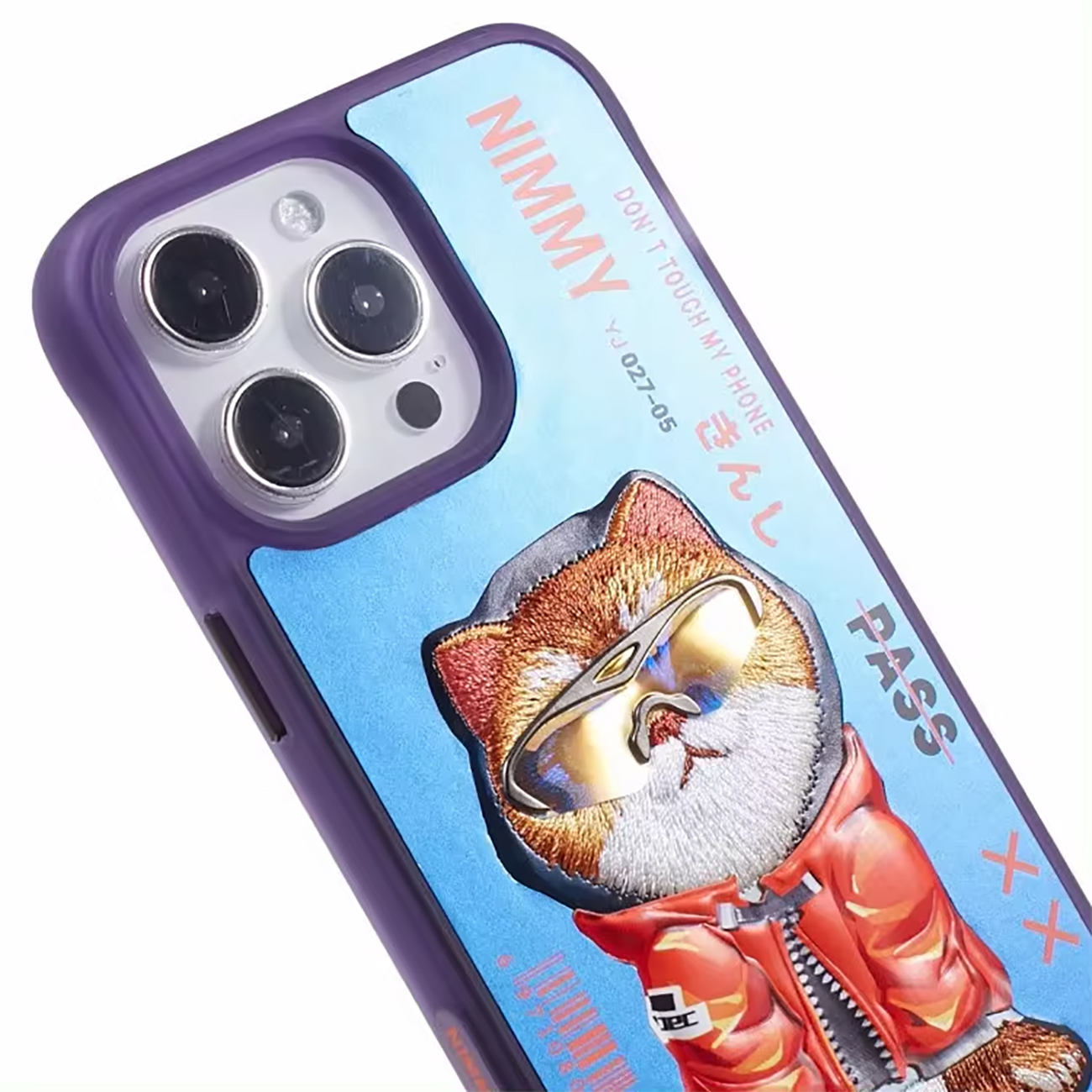 قاب محافظ گوشی آیفون 15 پرومکس طرح گربه با عینک و خز واقعی نیمی YJ027-05