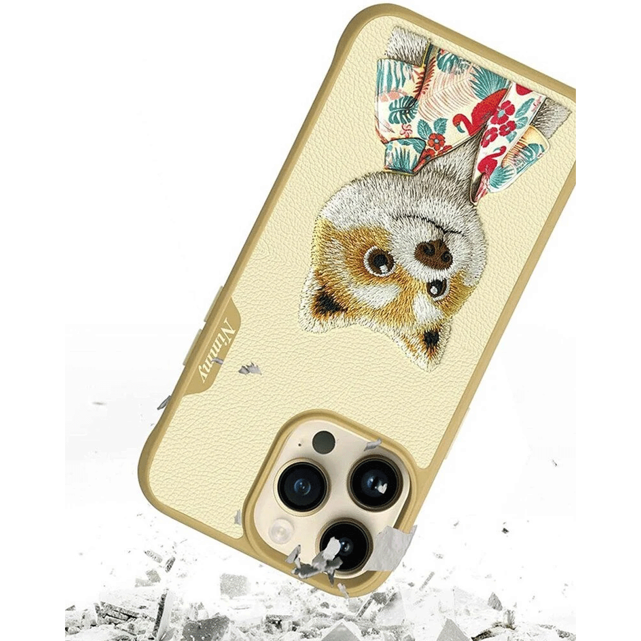 قاب محافظ گوشی آیفون 15 پرومکس طرح روباه با خز واقعی نیمی