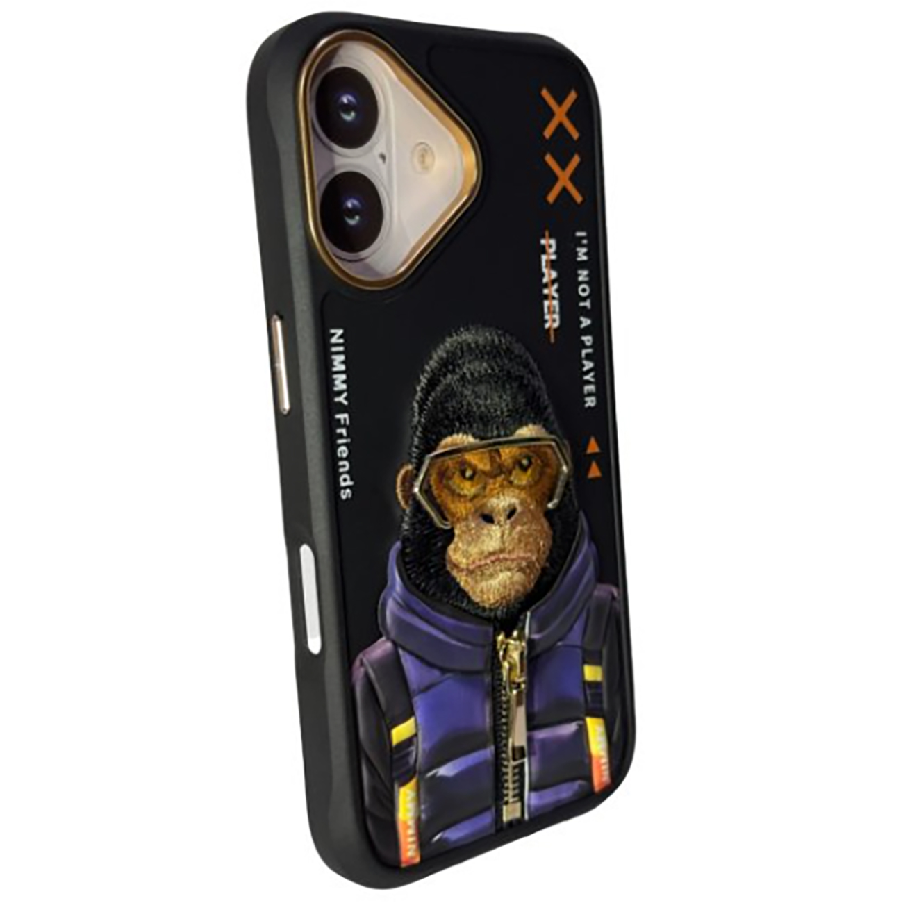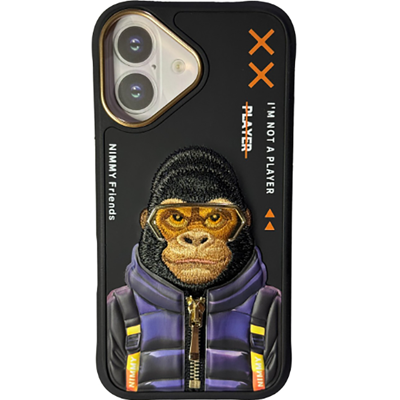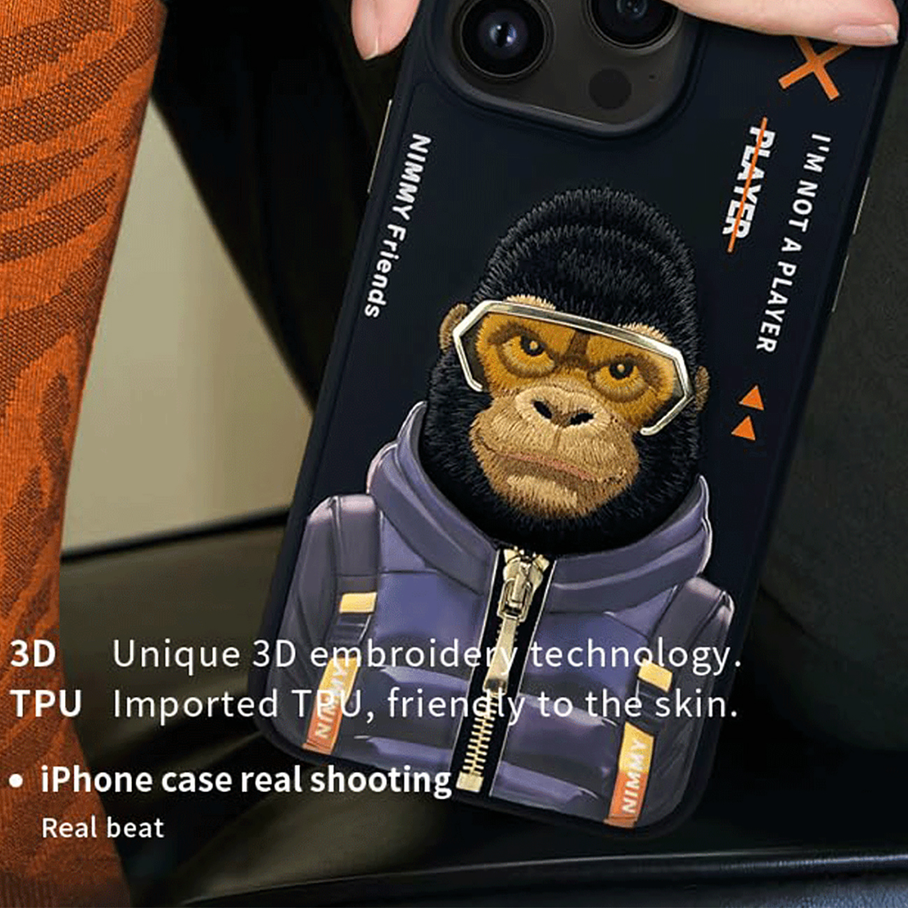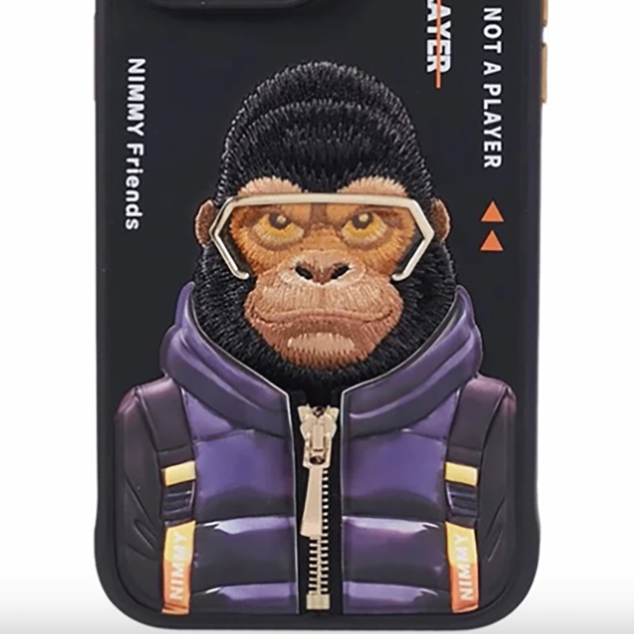 قاب محافظ گوشی آیفون 16 طرح گوریل با عینک و زیپ واقعی نیمی Embroidery