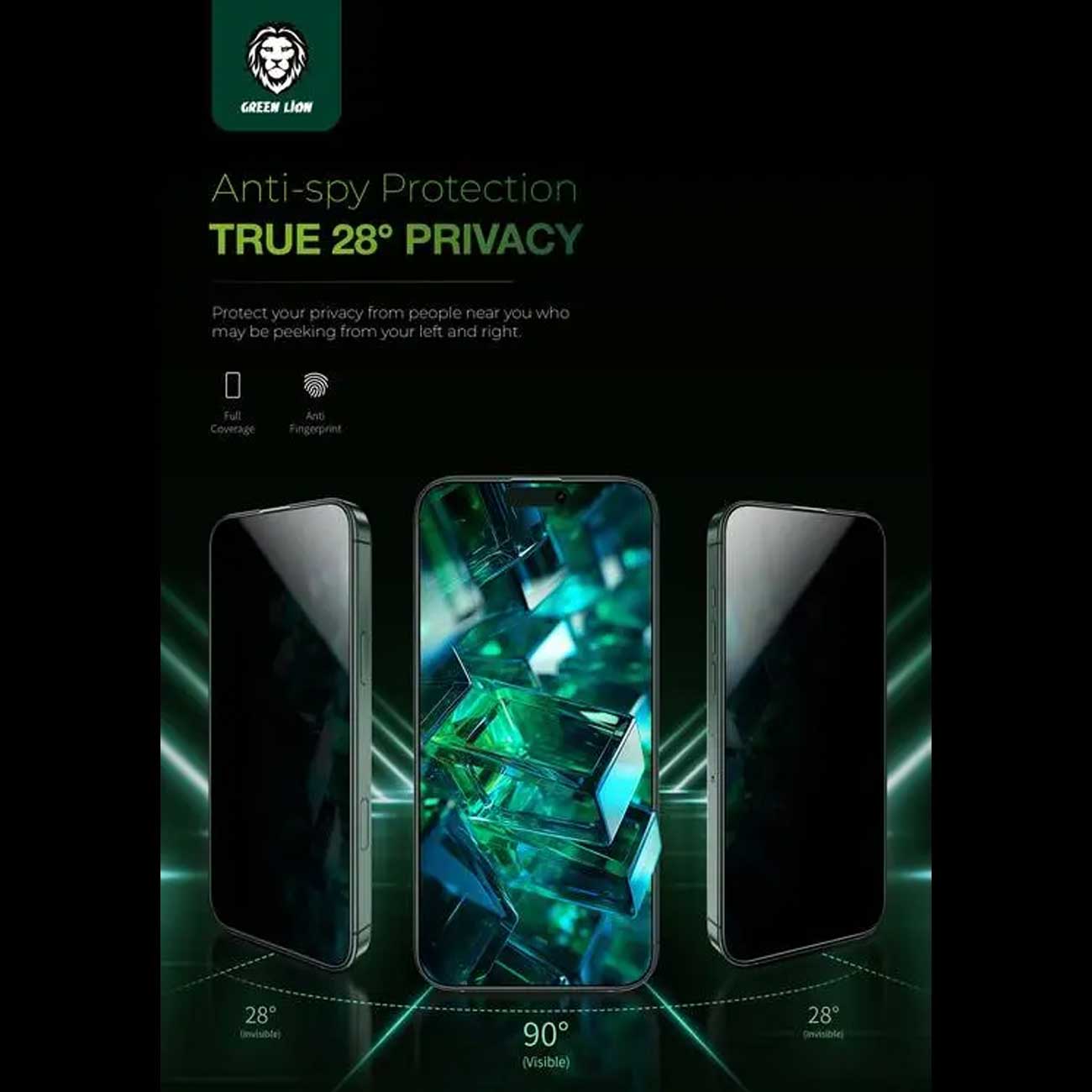 Green Lion 9H Steve Privacy Full Glass Screen Protector iPhone 16 / 15