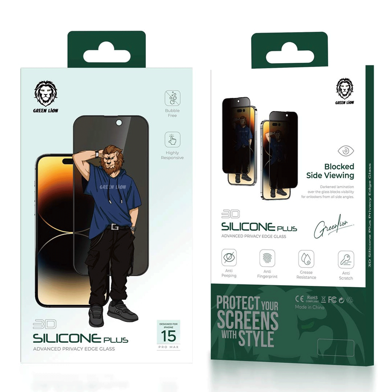 Green Lion 3D Silicone Privacy Screen Protector iPhone 15 Pro GN3DSPY15PBK