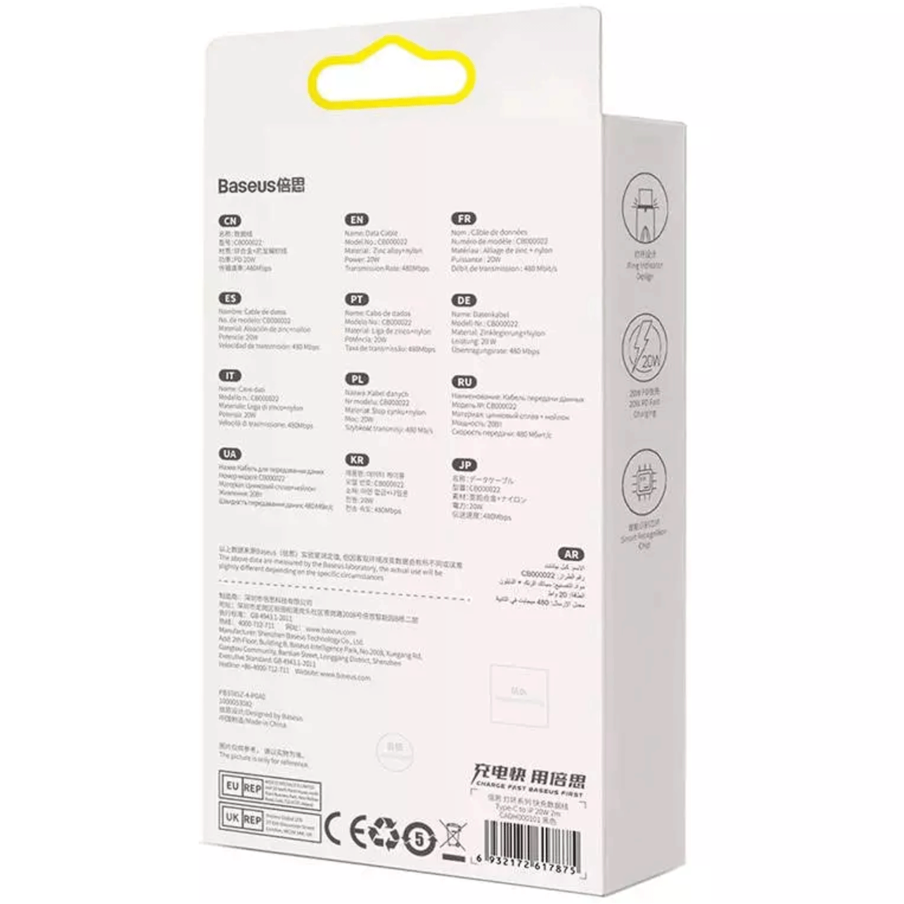 کابل تایپ سی به لایتنینگ 20 وات 2 متری بیسوس CADH000101