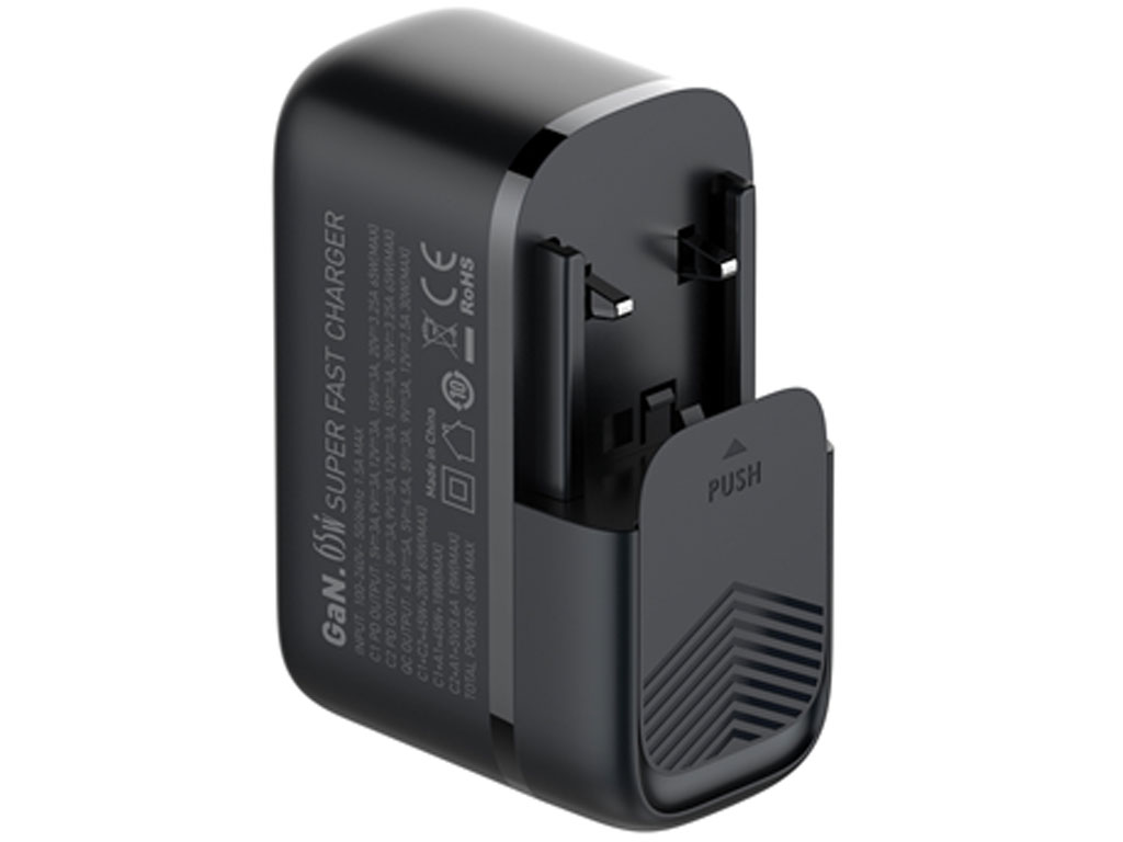 | ولتاژ خروجی | USB-C1 : 5V/3A,9V/3A,12V/3A ,15V/3A,20V/3.25A [65W MAX] USB-C2: 5V/3A,9V/3A,12V/3A ,15V/3A,20V/3.25A [65W MAX] USB-A1: 4.5V/5A, 5V/4.5A, 9V/3A, 12V/2.5A [30W MAX] C1+C2: 45W+20W=65W[MAX] C1+A1: 45W+18W [MAX] C2+A1: 5V/3.6A 18W[MAX] TOTAL POWER: 65W MAX |