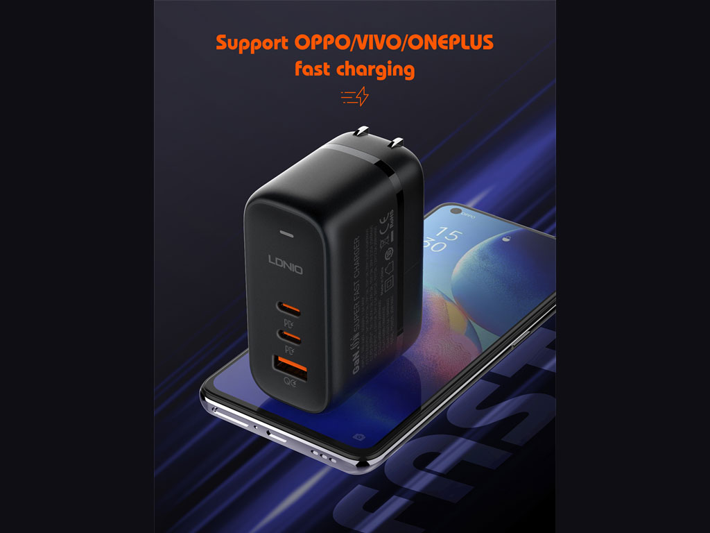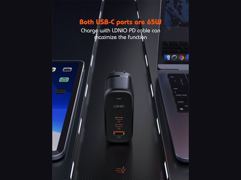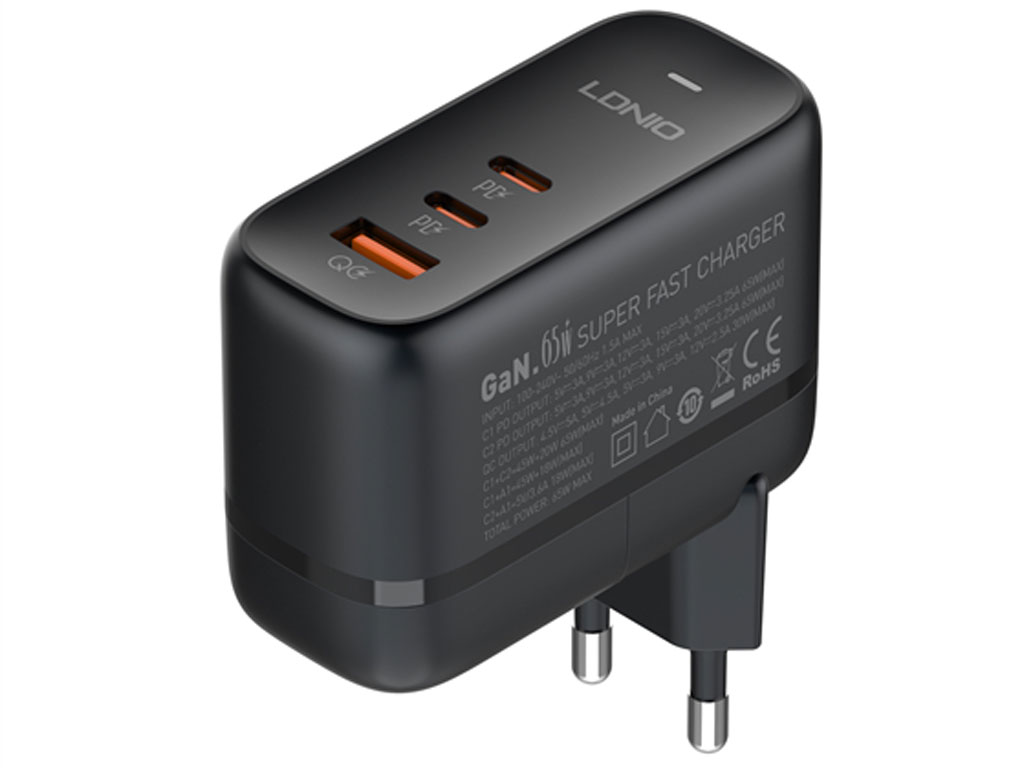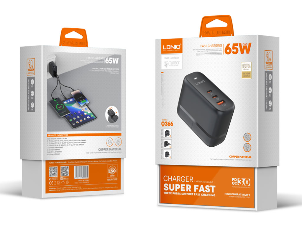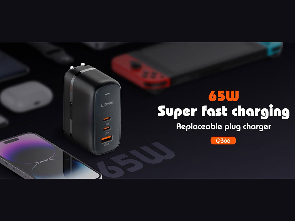 شارژر دیواری تایپ سی و یو اس بی 65 وات و 30 وات الدنیو LDNIO 65W GaN Supper Fast Charger Q366
