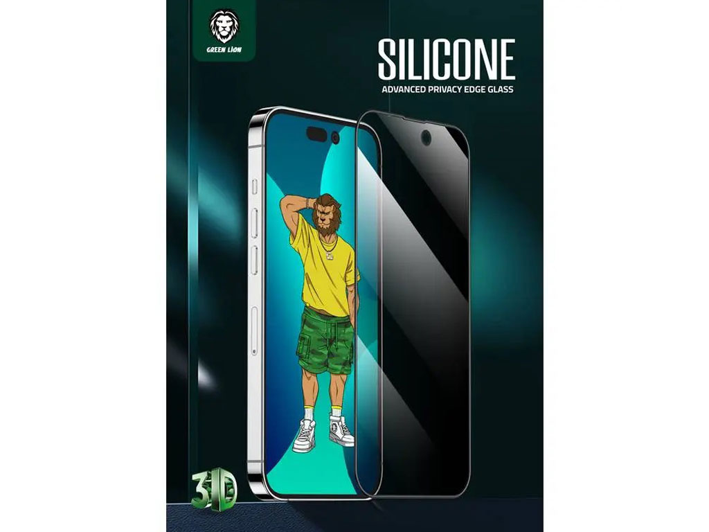 گلس حریم شخصی آیفون 14 گرین Green iPhone 14 3D Silicone+ Privacy Glass