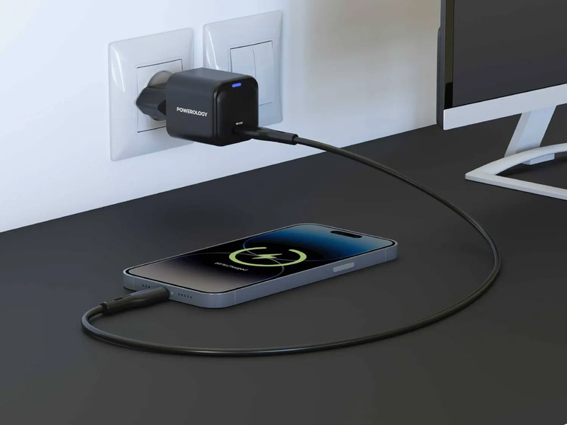 شارژر دیواری تایپ سی 20 وات پاورولوژی Powerology Ultra-Compact 20W GaN PD Charger PWCUQC015