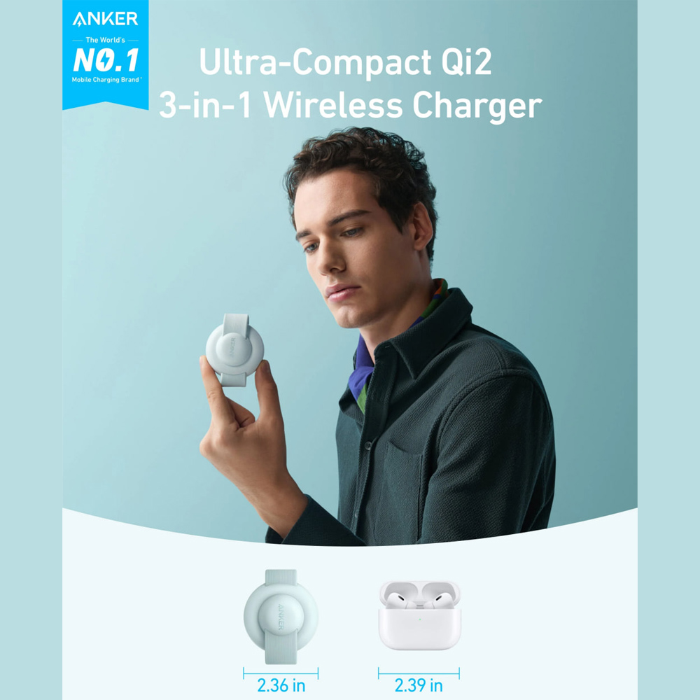 Anker MagGo 3-in-1 Foldable Charging Pad 15W Qi2 Wireless Charger