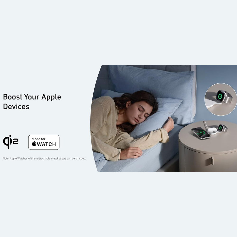 | سازگار با | سازگاری گوشیها: آیفون سری 16 / 15 / 14 / 13 / 12 (سازگار با MagSafe)/ گوشیهای سازگار با فناوری Qi2 سازگاری ساعت: اپل واچ سری 9 / 8 / 7 / Ultra (با پشتیبانی از شارژ سریع) و اپل واچ سری 1 تا 6 سازگاری ایرپاد: ایرپاد با کیس شارژ وایرلس |