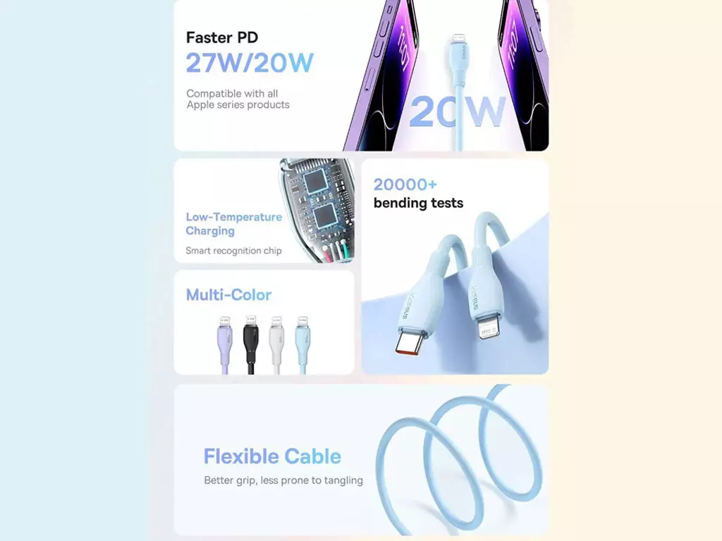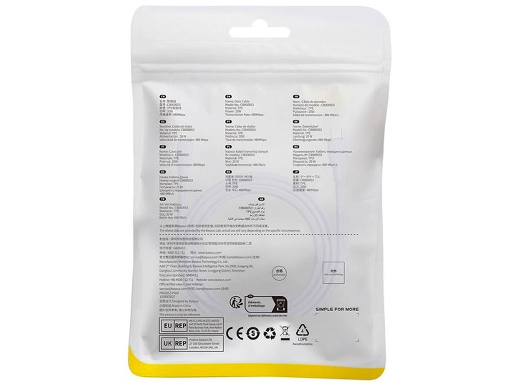 کابل شارژ سریع تایپ سی به لایتنینگ 20 وات 1.2 متری بیسوس P10355701511-00