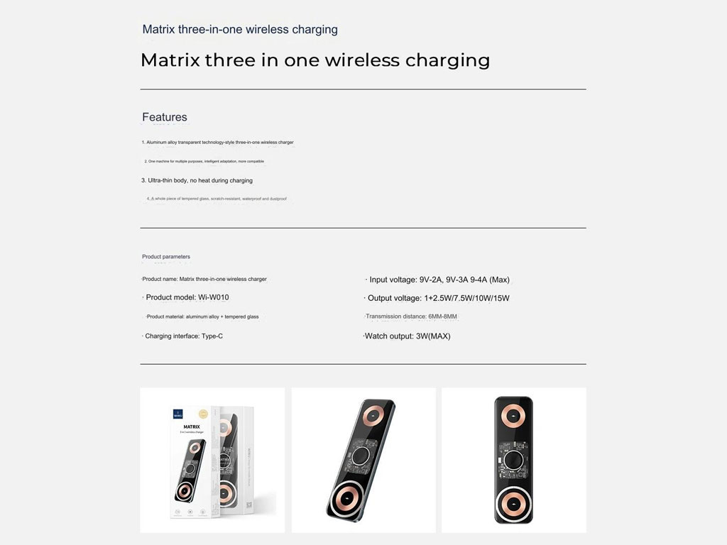WIWU Wi-W010 Matrix 3 in 1 15W Wireless Charger