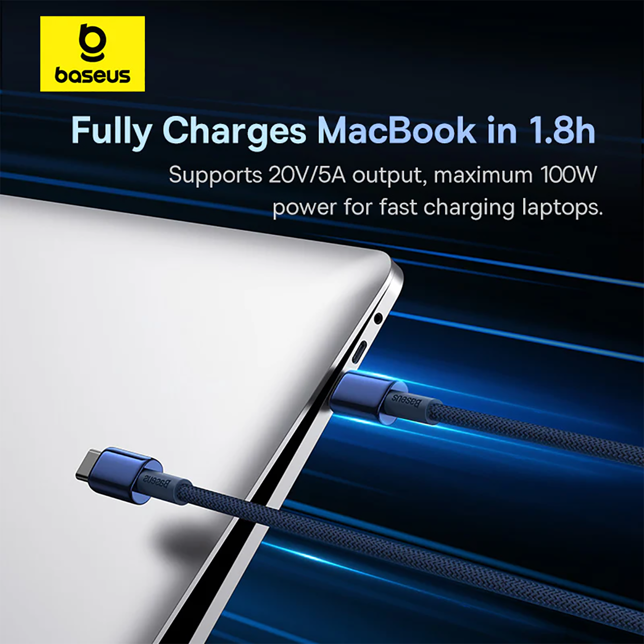 کابل دو سر تایپ سی فست شارژ 100 وات 5 آمپر یک متری بیسوس P10319800321-03
