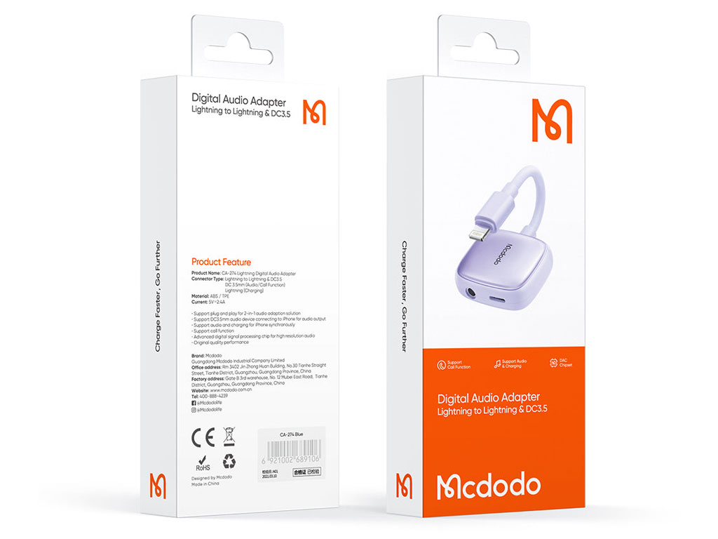Mcdodo CA-2740 2-in-1 Lightning to Lightning and DC3.5 Digital Audio Cable