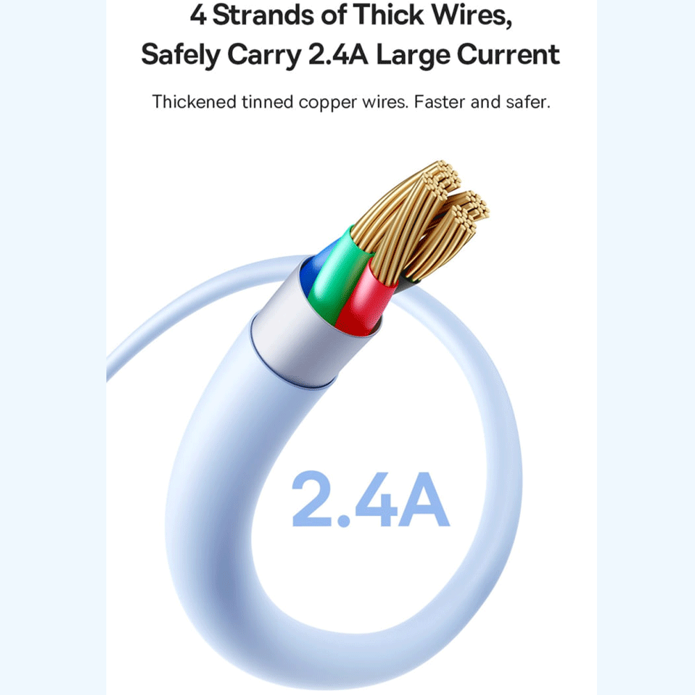 کابل فست شارژ یواسبی به لایتنینگ 2.4 آمپر یک متری بیسوس P10377702113-00