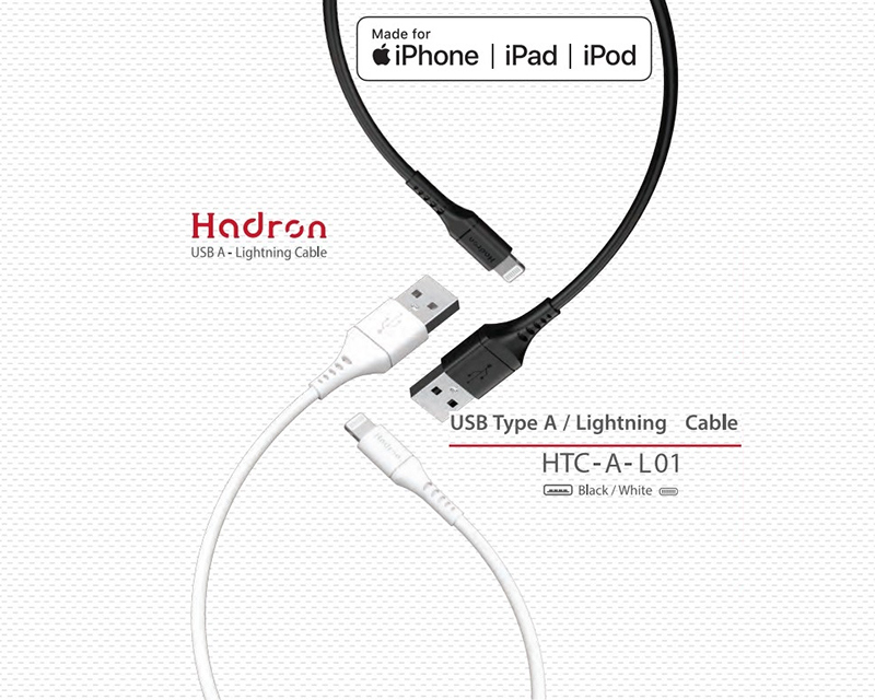 کابل شارژ و انتقال داده لایتنینگ هادرون Hadron MFI HTC-A-L01 USB A Lightning Cable