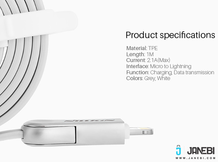 کابل دو سر میکرو یو اس بی و لایتنینگ نیلکین Nillkin Plus Ⅲ Cable Micro And Lightning