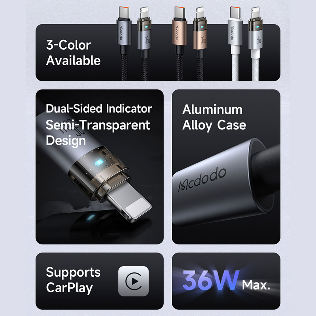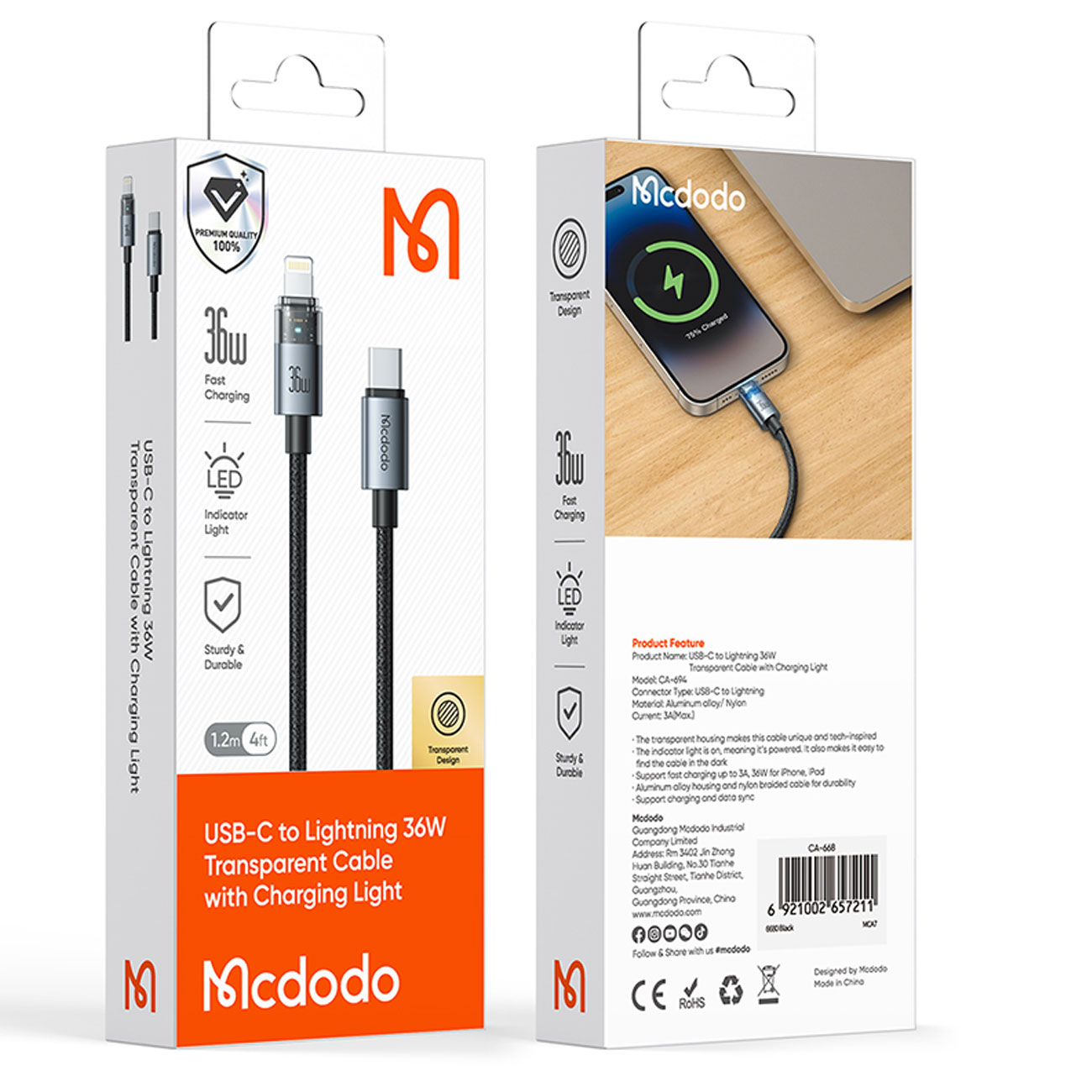 MCDODO CA-694 36W LIGHTNING TRANSPARENT CABLE