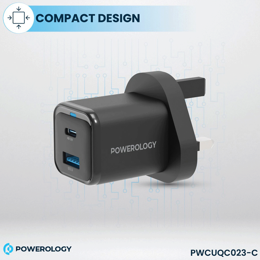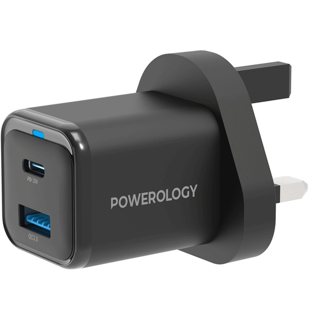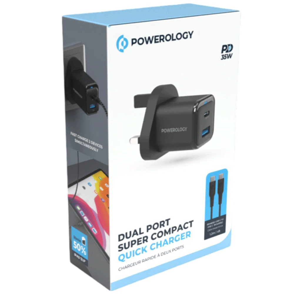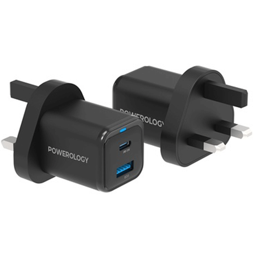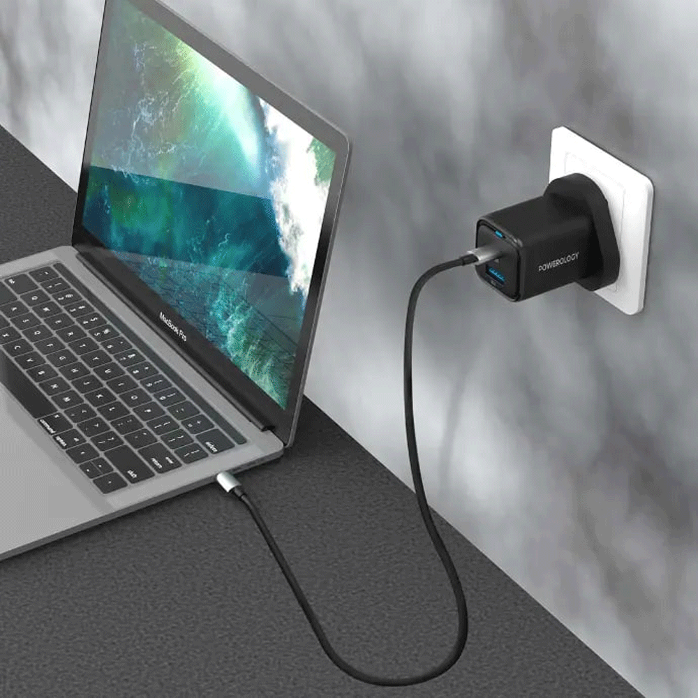 Powerology PWCUQC023-C 1xUSB-C 35W / 1xUSB-A 18W GaN Charger with Type C to C 60W