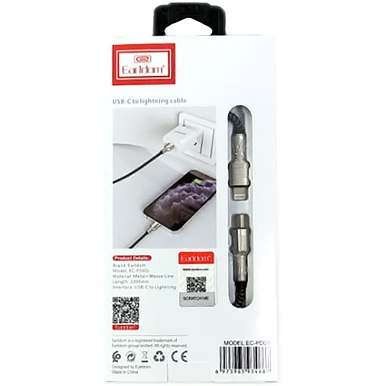 کابل شارژ سریع تایپ سی به لایتنینگ 20 وات 1 متری ارلدام EC-PD01i