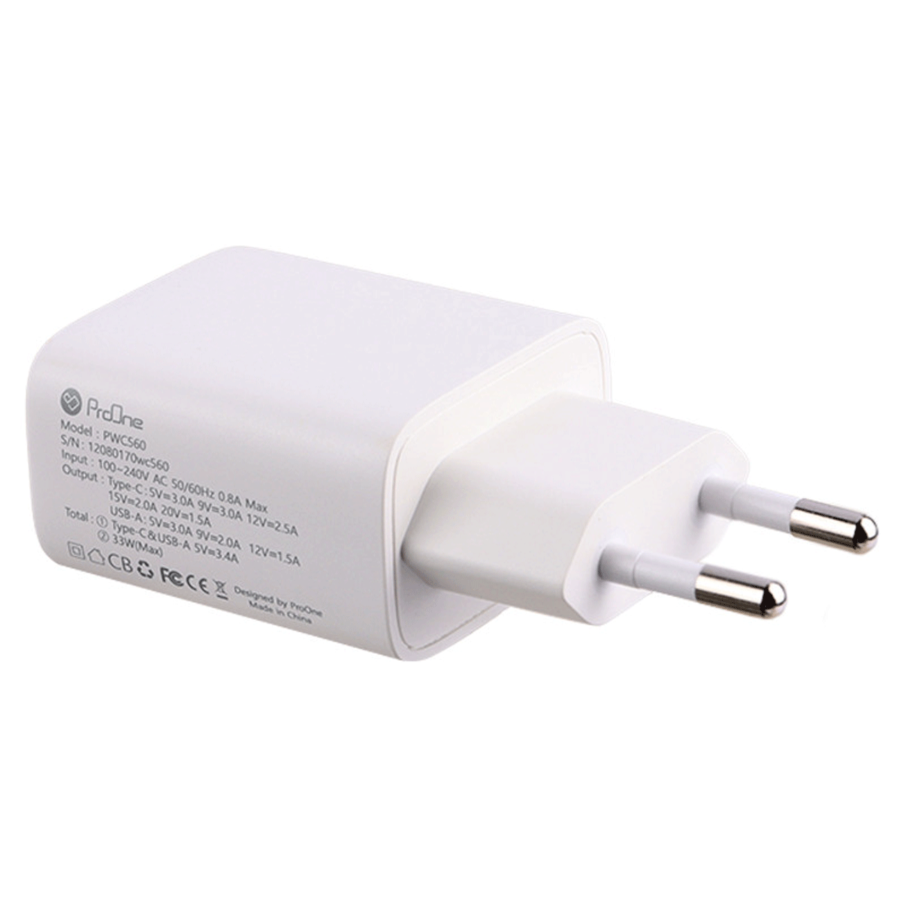 ProOne PWC560 2Port 3A QC3.0 PD 30W Fast Wall Charger