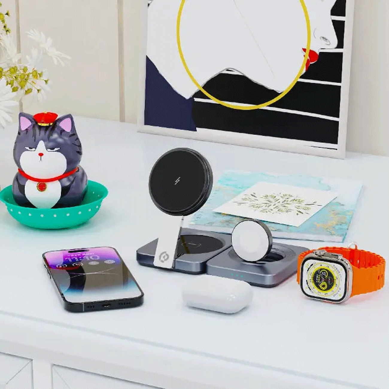 Powerology Qi2-15W Magsafe iPH15 Multi-Device Charging Stand PWCUQC027