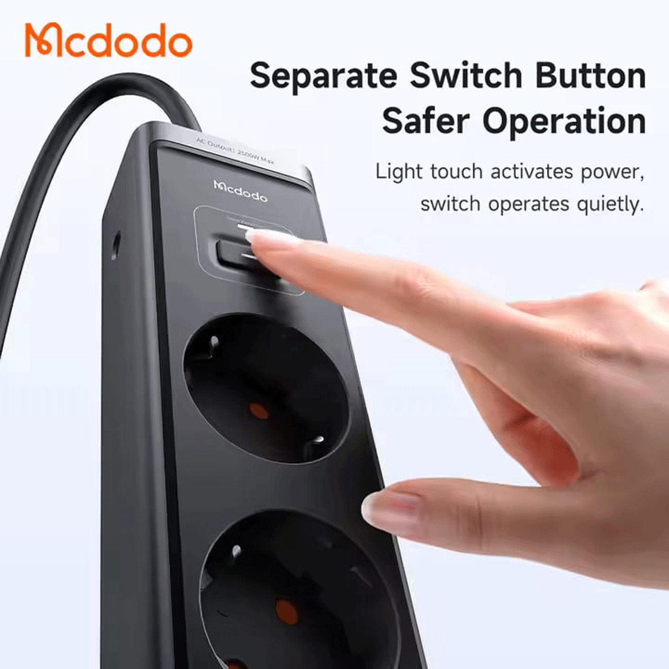 چندراهی برق 2500 وات سه سوکت، یک یو اس بی و دو تایپ سی 30 وات شارژ سریع رومیزی مک دودو CH-062