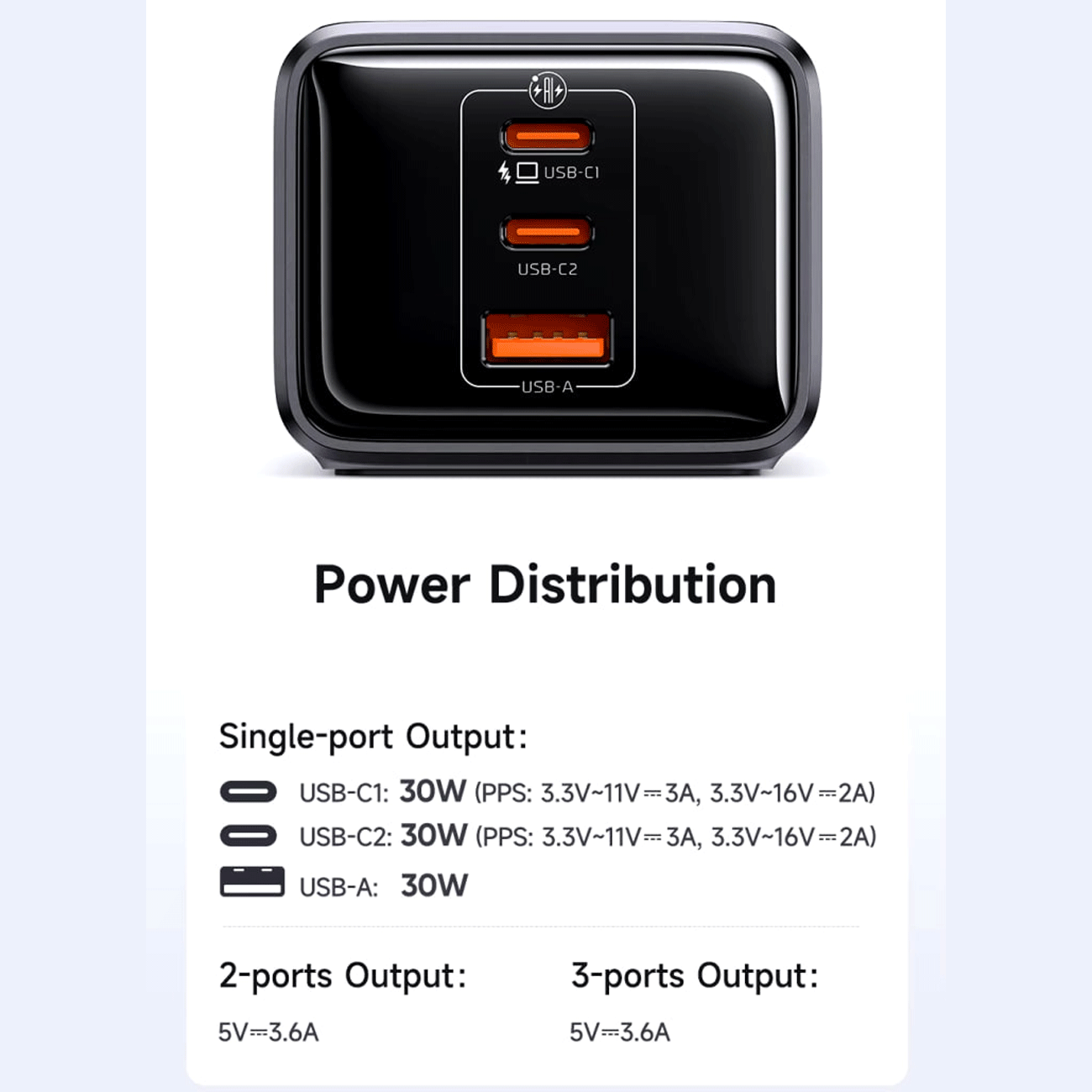 | USB-C1/C2 | 5V⎓3A, 9V⎓3A, 12V⎓2.5A, 15V⎓2A, 20V⎓1.5A, (PPS: 3.3V~11V⎓3A, 3.3V~16V⎓2A), maximum 33W (each port) |