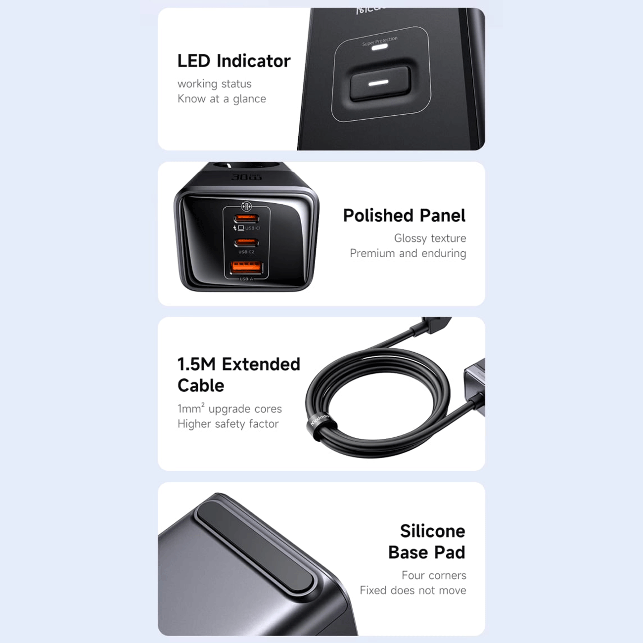 | USB-A | 5V⎓3A, 9V⎓3A, (SCP 10V⎓2.25A), 12V⎓2.5A, 15V⎓2A, 20V⎓2A, maximum 30W |