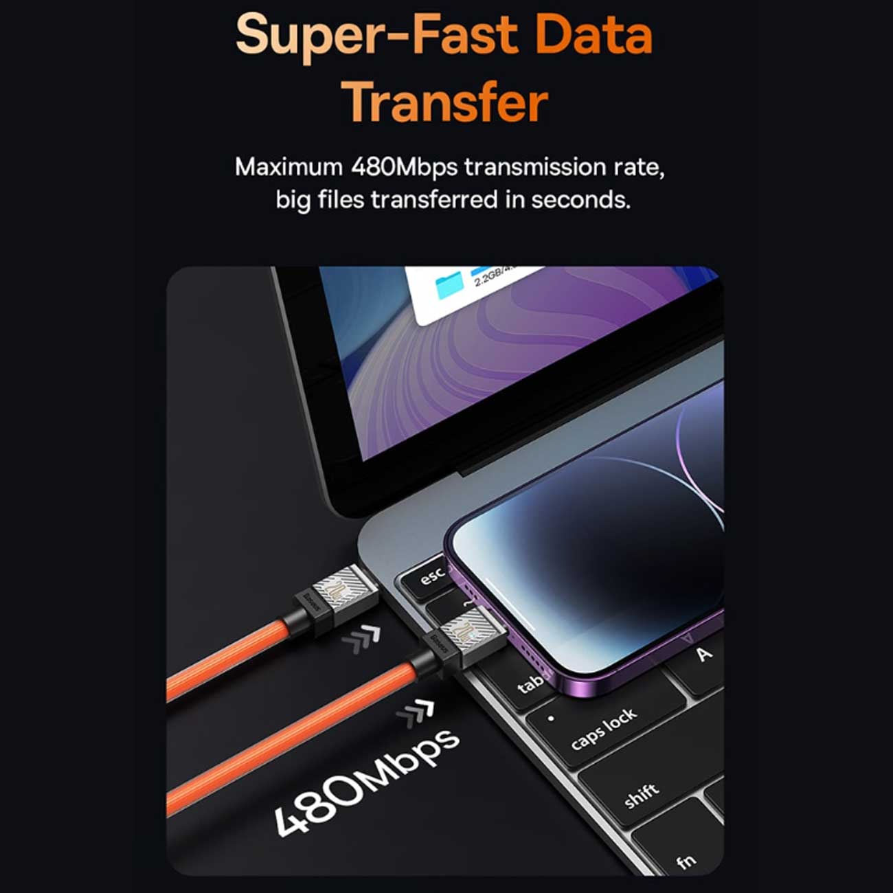 کابل شارژ سریع تایپ سی به لایتنینگ 20 وات 2 متری بیسوس CAKW000101 CB000045
