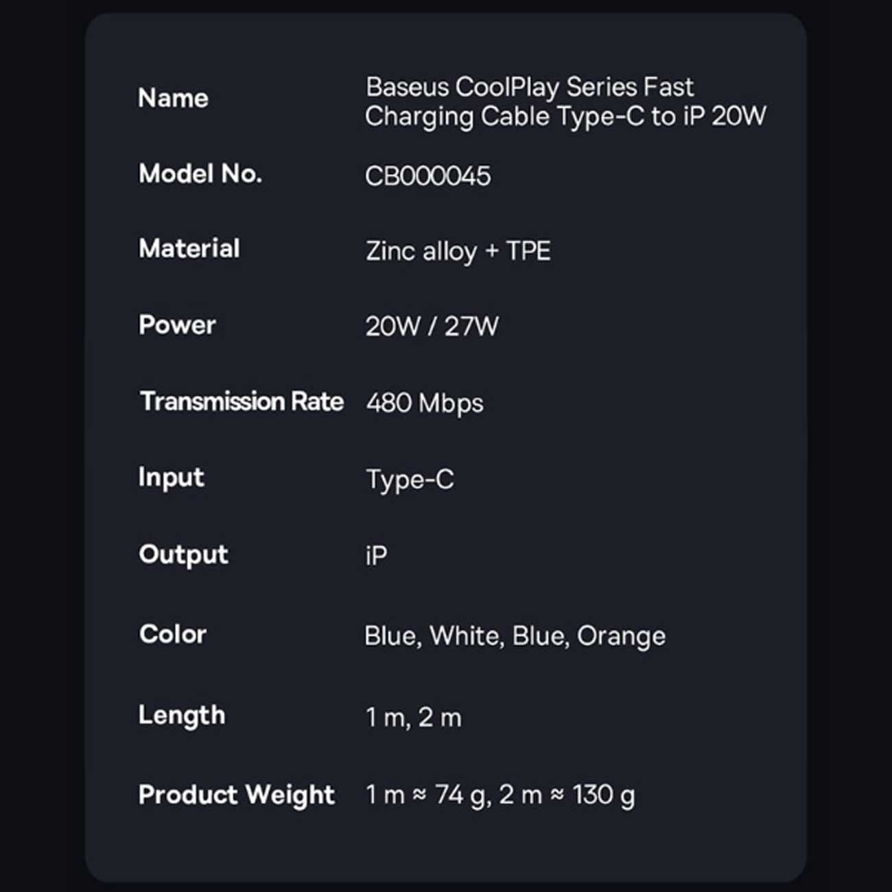 Baseus USB-C to Lightning Coolplay Series 2m 20W Fast Charging Cable CAKW000101 CB000045