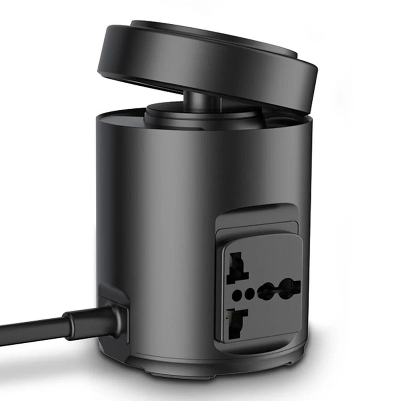 شارژر وایرلس رومیزی 15 وات و چندراهی برق 2200 وات دو یو اس بی، دو تایپ سی و دو سوکت برق پاورولوژی PWCUQC014