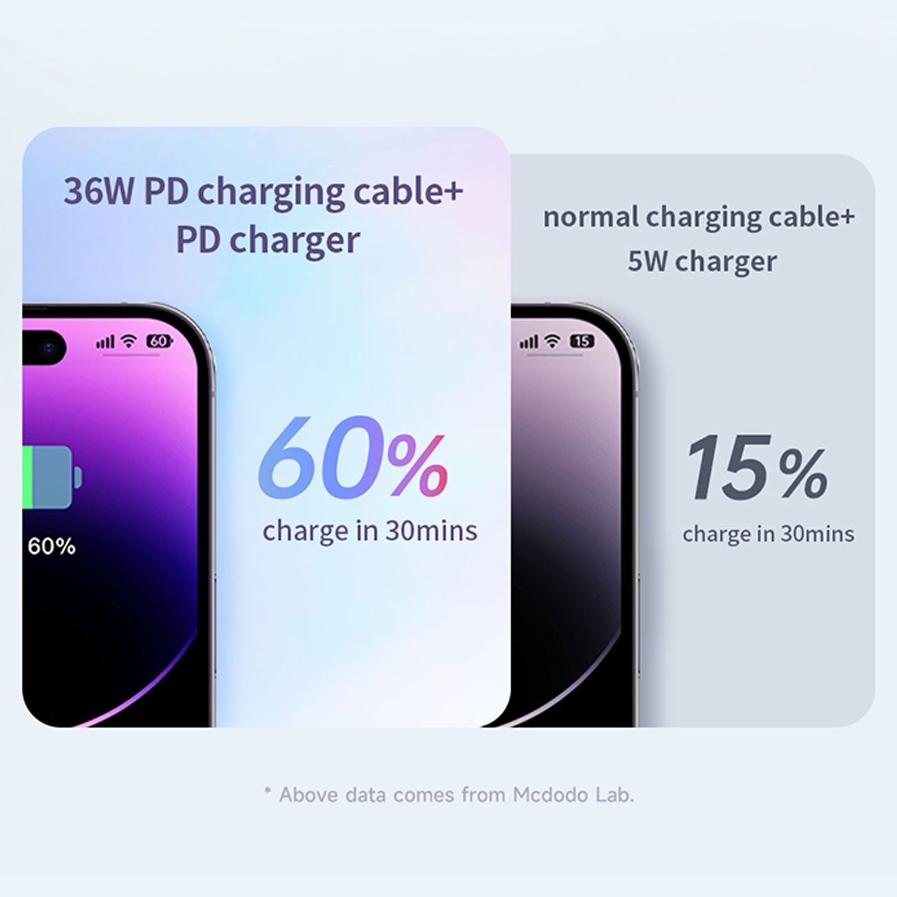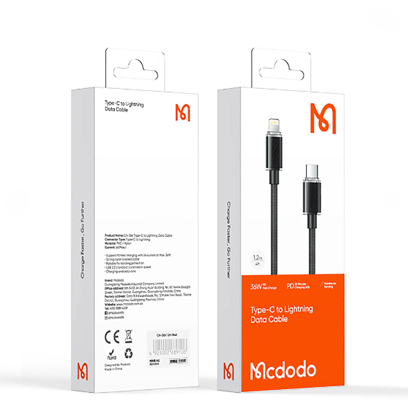 کابل فست شارژ تایپ سی به لایتنینگ 36 وات 1.2 متری مک دودو CA-366