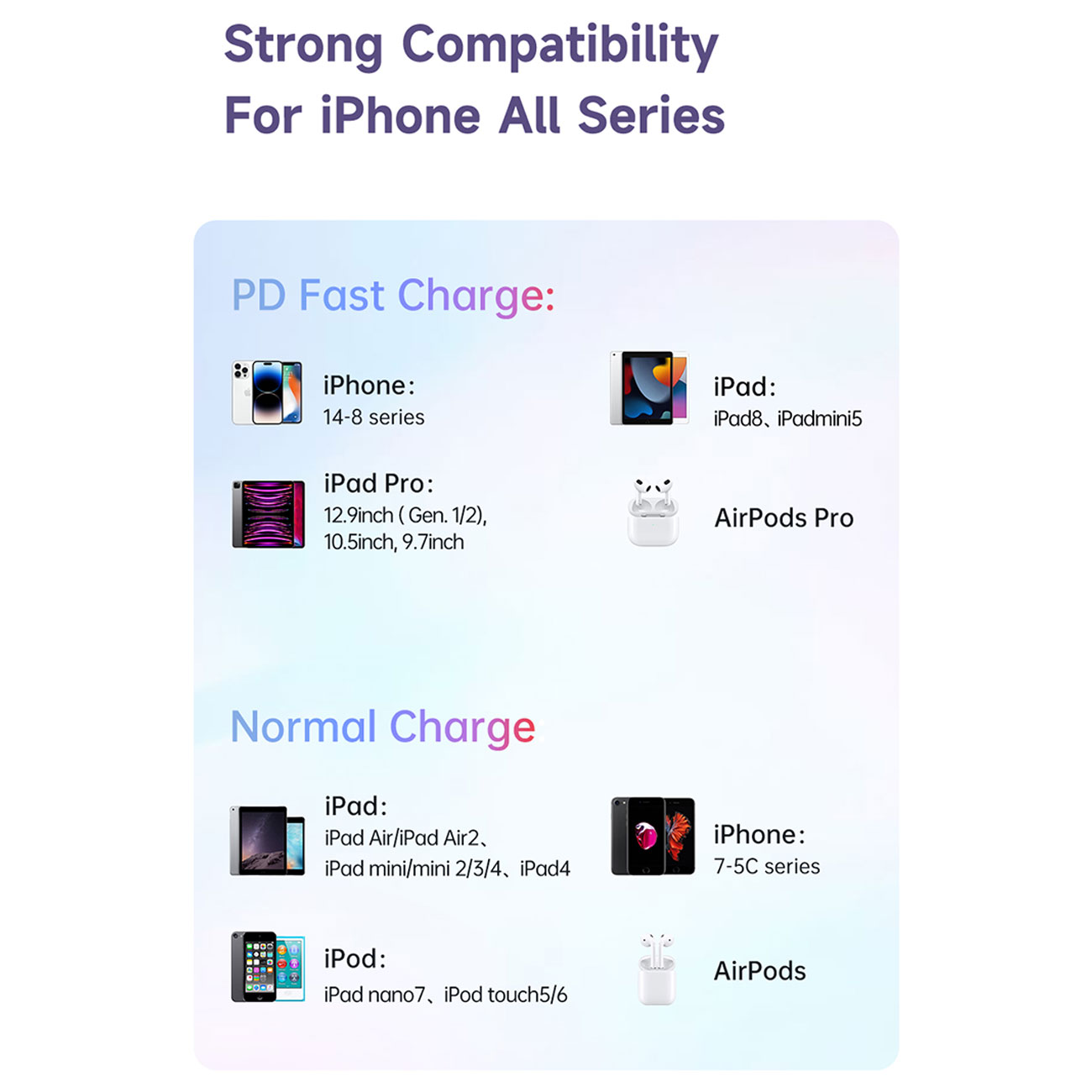 | قابلیت فست شارژ PD 36W برای دستگاههای IOS | |