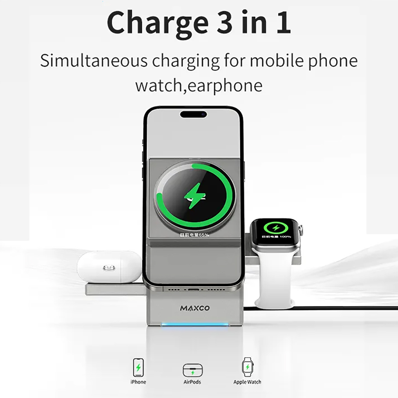 Maxco Geometry Series 3 in 1 Wireless Charger 15W Qi2 Certified (MW11)
