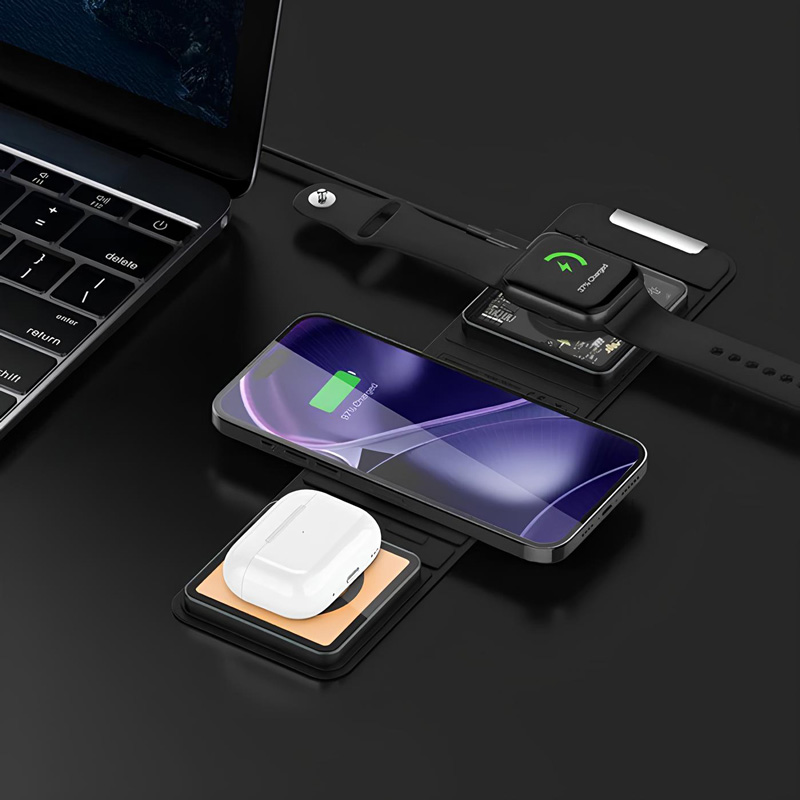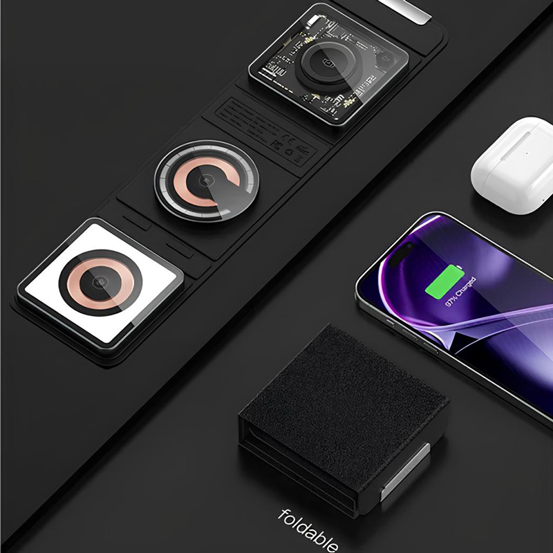 شارژر بی سیم تاشو گوشی آیفون، اپلواچ و ایرپادز با طراحی شفاف مکسکو MCW-02