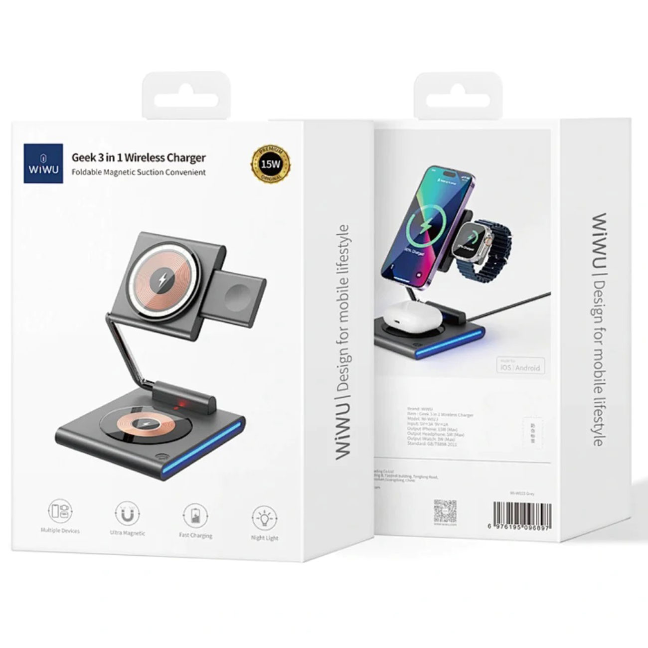 شارژر وایرلس رومیزی سه کاره 15 وات گوشی، اپل واچ و ایرپاد ویوو Wi-W023