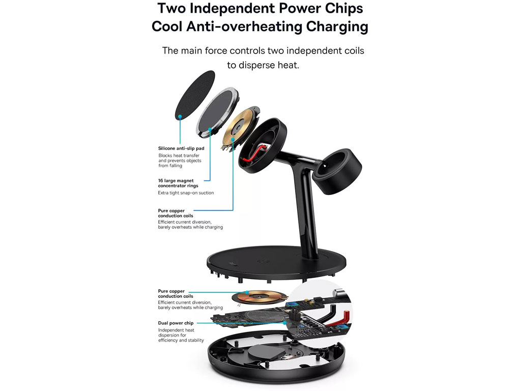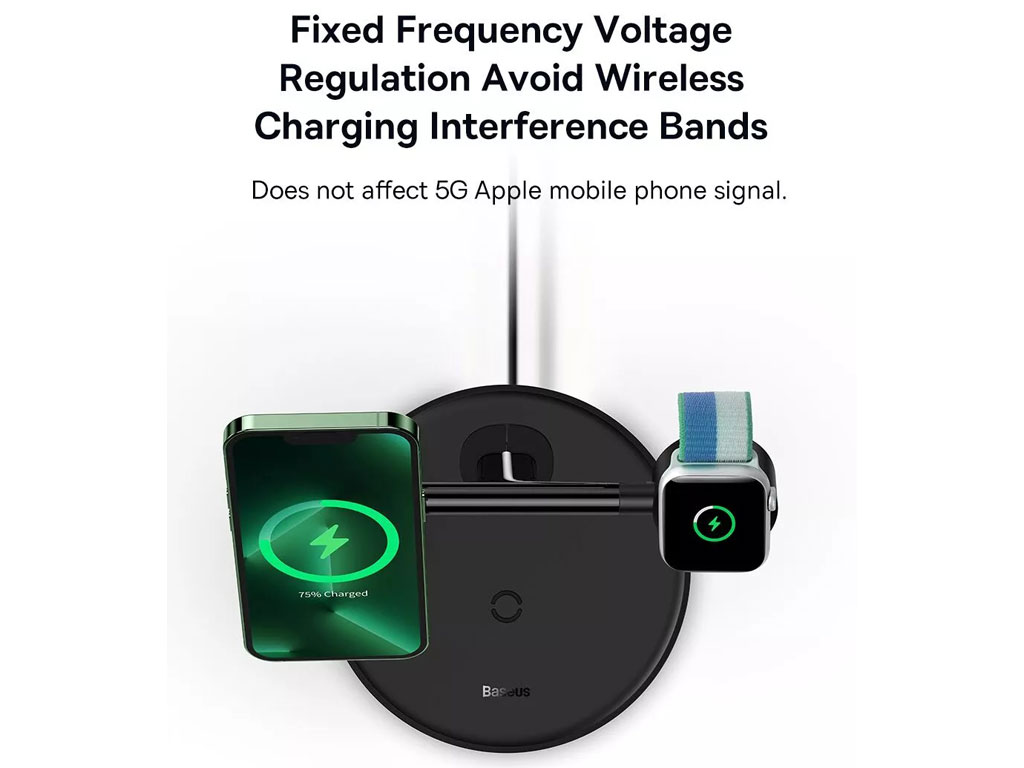 شارژر بی سیم مگنتی رومیزی آیفون 20 وات و پایه نگهدارنده موبایل 3 در 1 بیسوس Baseus Swan 3-in-1 Wireless Magnetic Charging Bracket 20W WXTE000001