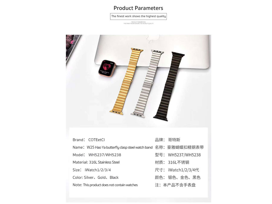 | مشخصات بند اپل واچ سری 1/2/3/4 استیل کوتتسی Cottetci WH5238-BK | |