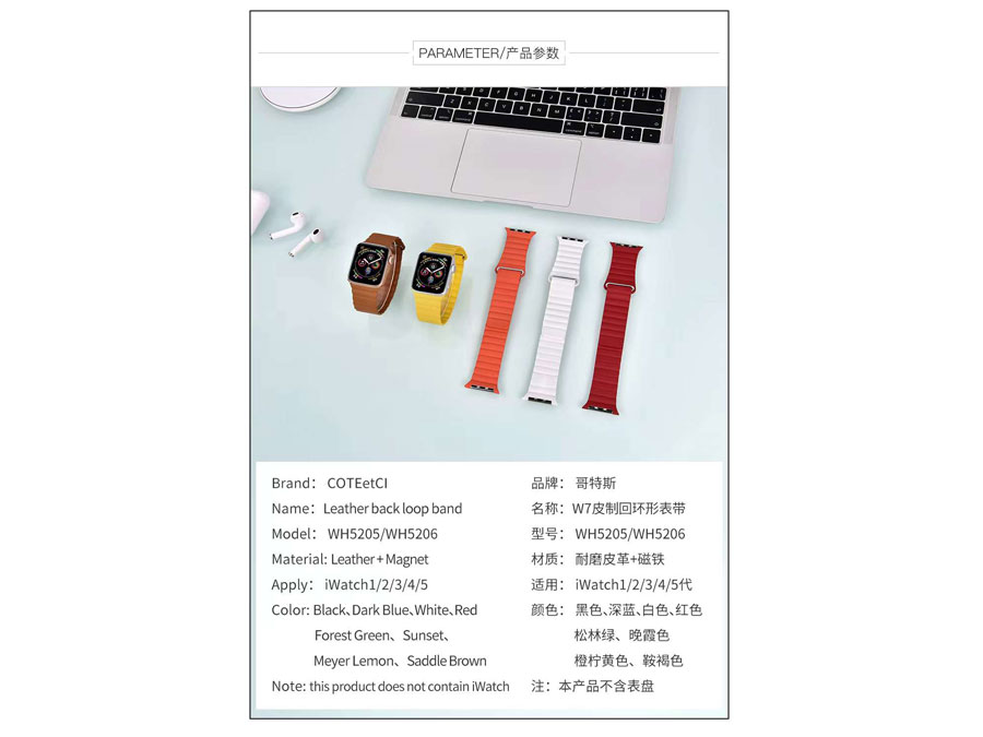 | مشخصات بند اپل واچ چرمی 1/2/3/4/5 کوتتسی Cottetci WH5206-BK | |