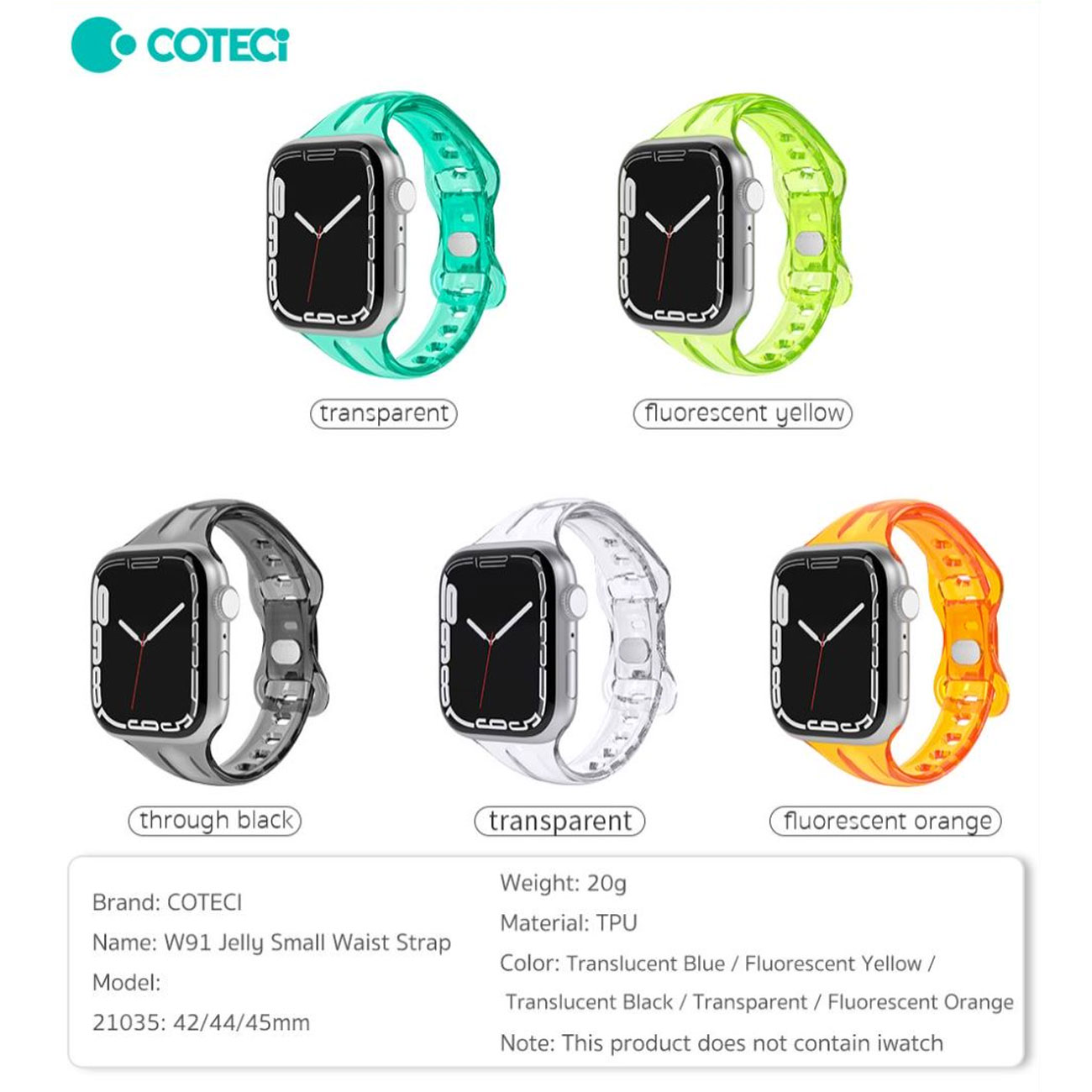 coteetci W91Jelly Small Waist Strap (42/44/45/49mm) 21035-TT 21035-TBL 21035-TBK 21035-TOR