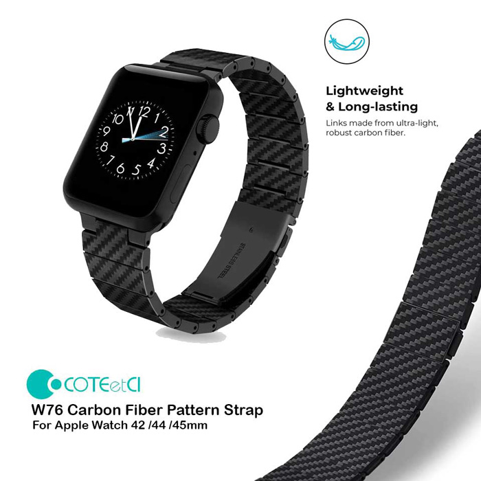 بند اپل واچ 38/40/41 میلیمتری استیل الگوی فیبر کربن کوتتسی W76 22007