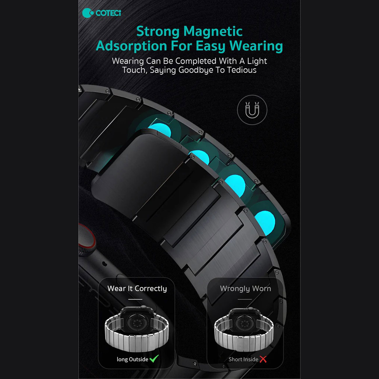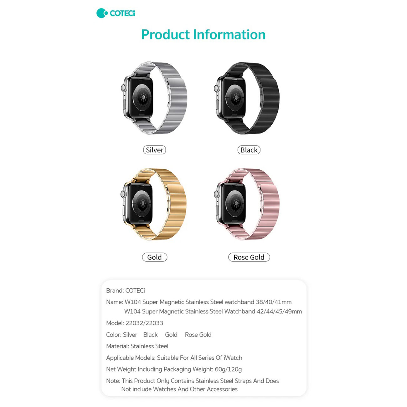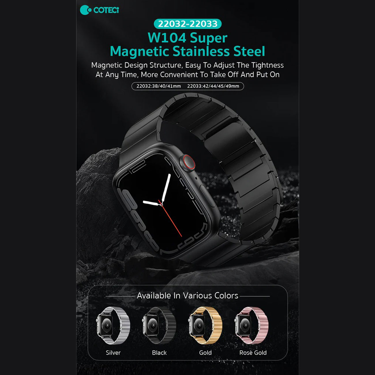 coteetci W104 Super Magnetic Stainless Steel(42/44/45/49mm) 22033-TS 22033-BK 22033-GD 22033-MRG