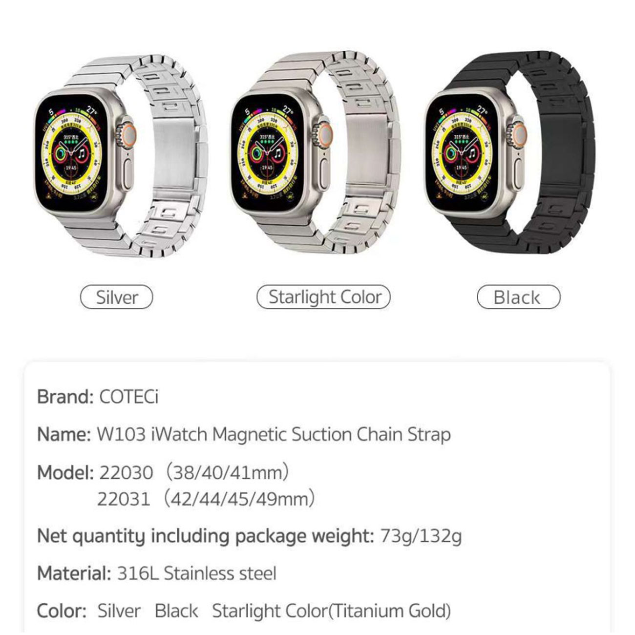 coteetci W103 22031 Magnetic Suction Chain Strap(42/44/45/49mm) 22030-BK 22030-TS 22030-SR