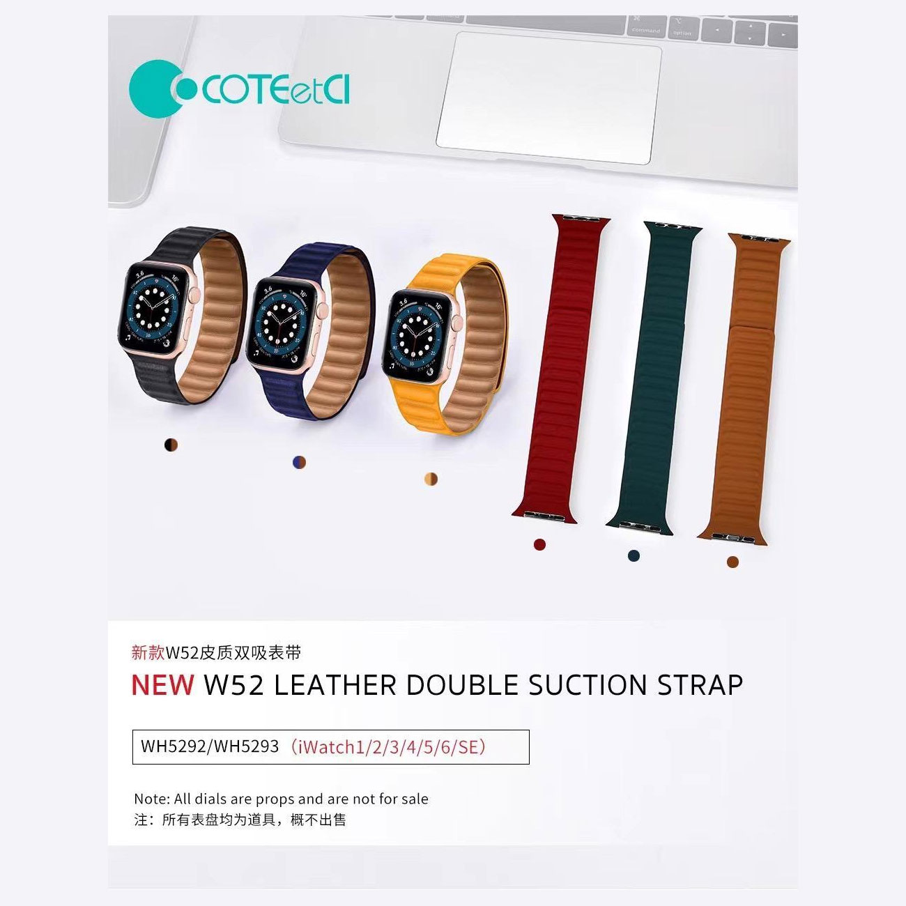 coteetci W52 leather double suction watch band(42/44/45/49mm) WH5292-BK WH5292-DB WH5292-RD WH5292-WH WH5292-GR WH5292-SN WH5292-ML