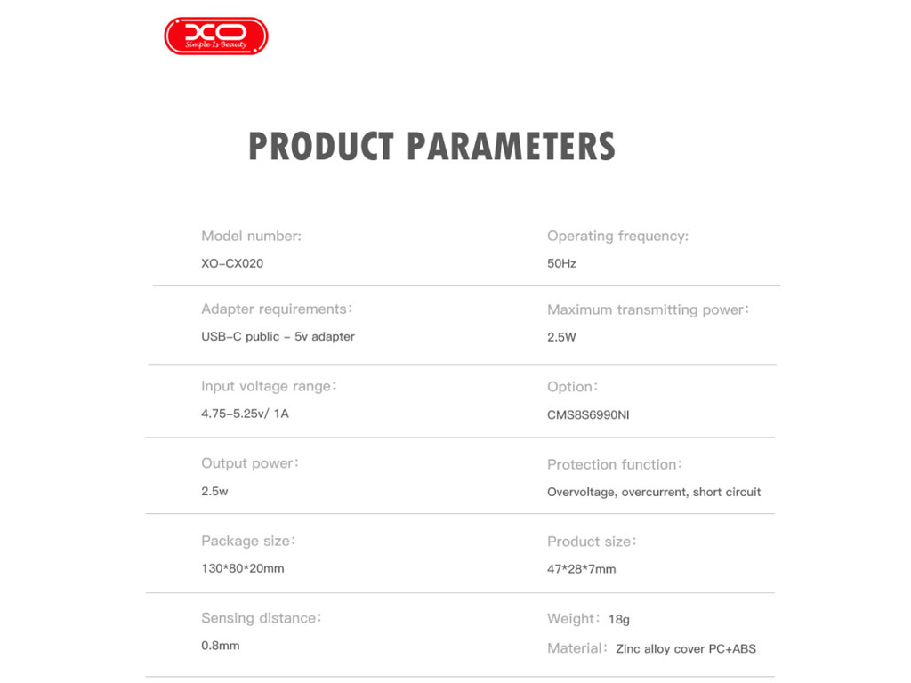 XO CX020 USB Type-C Portable Wireless Charger 2.5W for Apple Watch