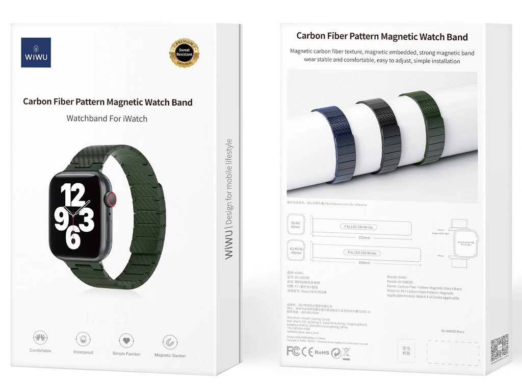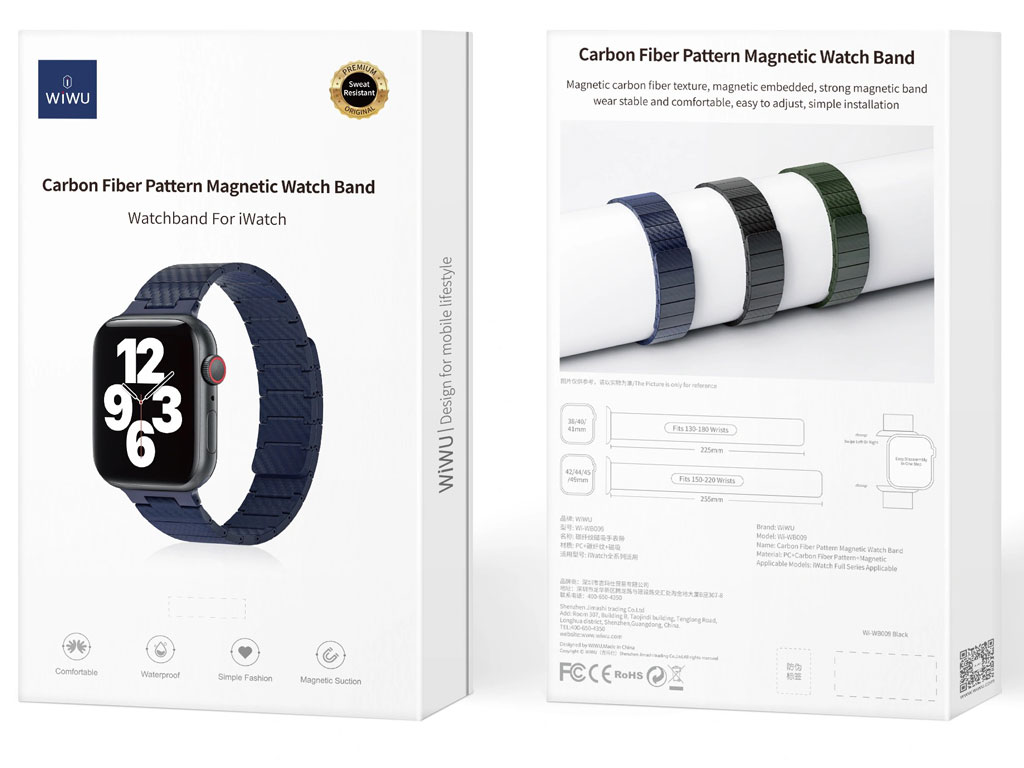 بند اپل واچ مگنتی با الگوی فیبر کربن 42، 44، 45 و 49 میلیمتری ویوو WIWU 42/44/45/49MM Carbon Fiber pattern magnetic watch band Wi-WB009