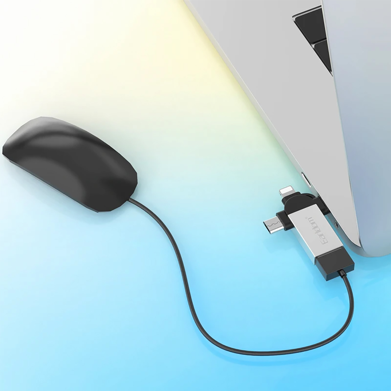 مناسب برای اتصال دستگاه های جانبی مانند فلش مموری، موس، کیبورد و … به دستگاه های دارای درگاه تایپ سی، لایتنینگ و میکرو یو اس بی